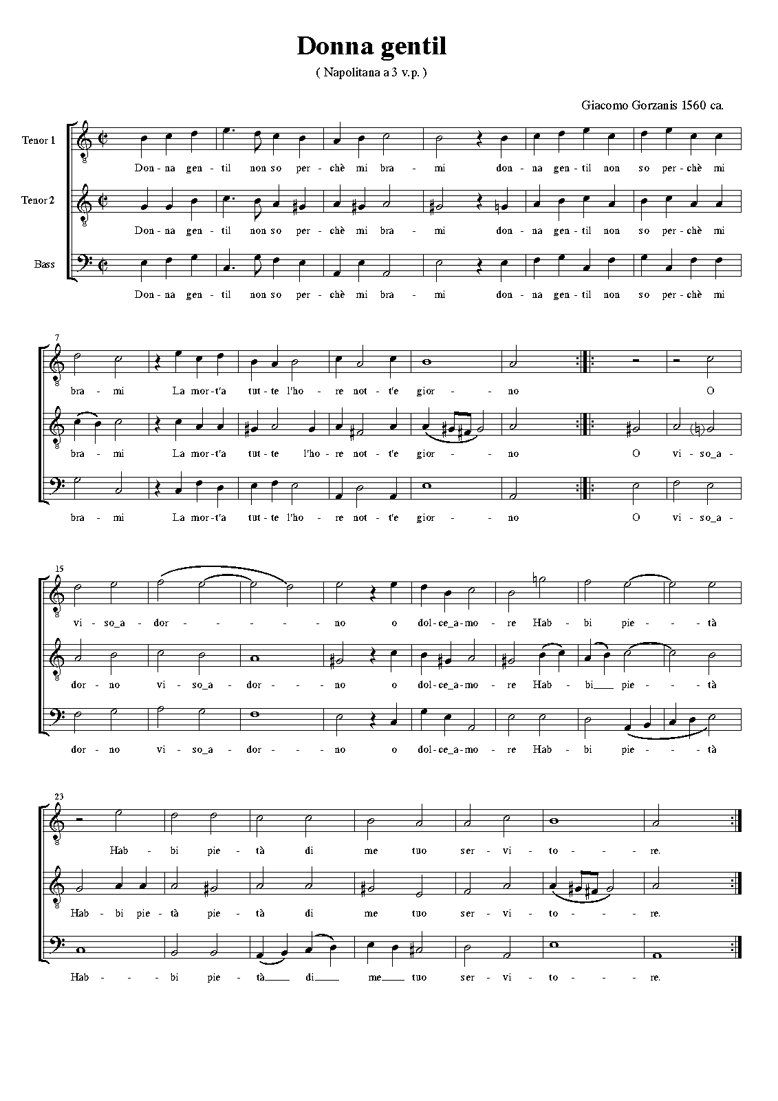 | First Publication | 1570 in Il primo libro di napolitane che si cantano et sonano in leuto |