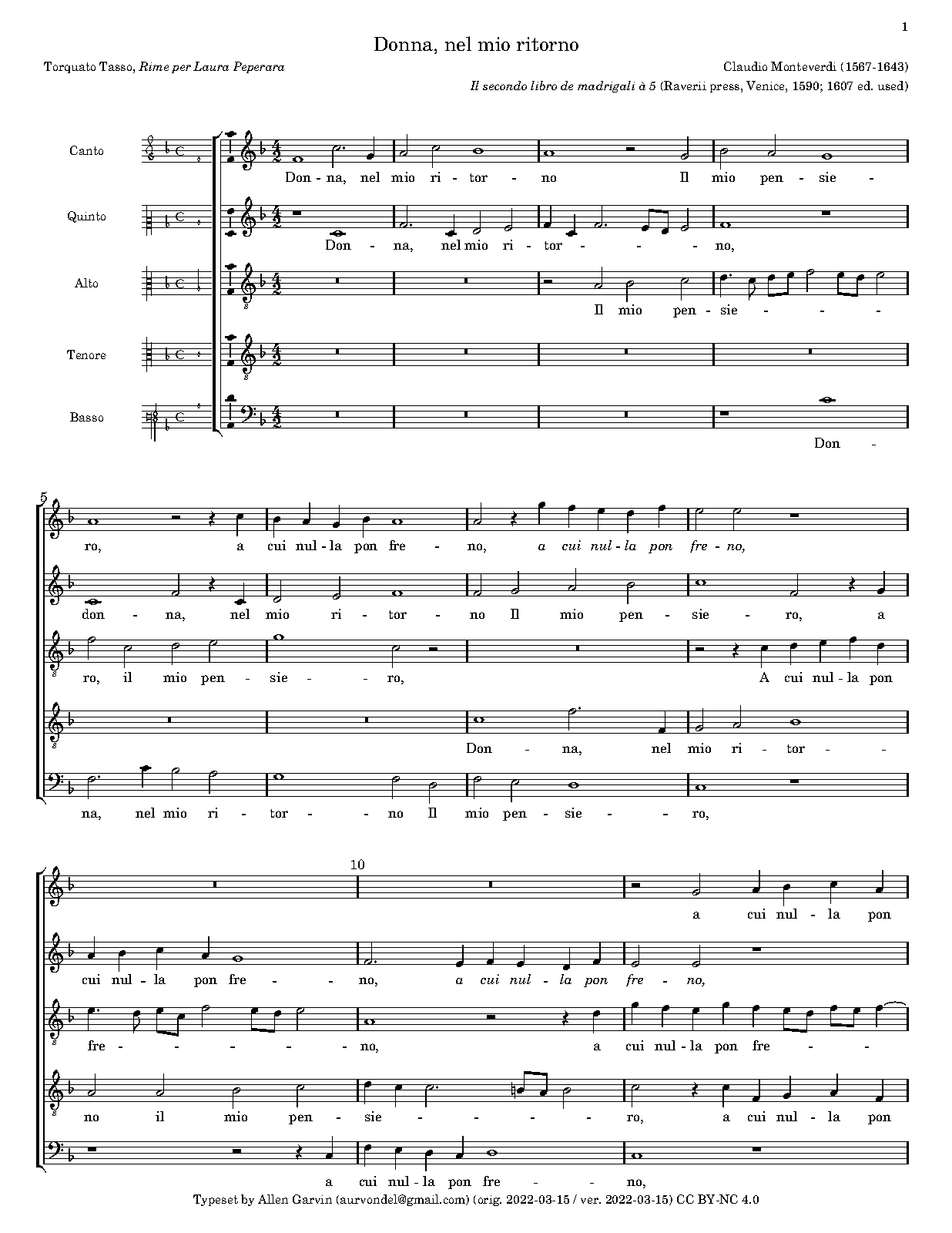 | First Publication | 1590 in Il secondo libro de madrigali à 5 (Venice: Raverii press) |