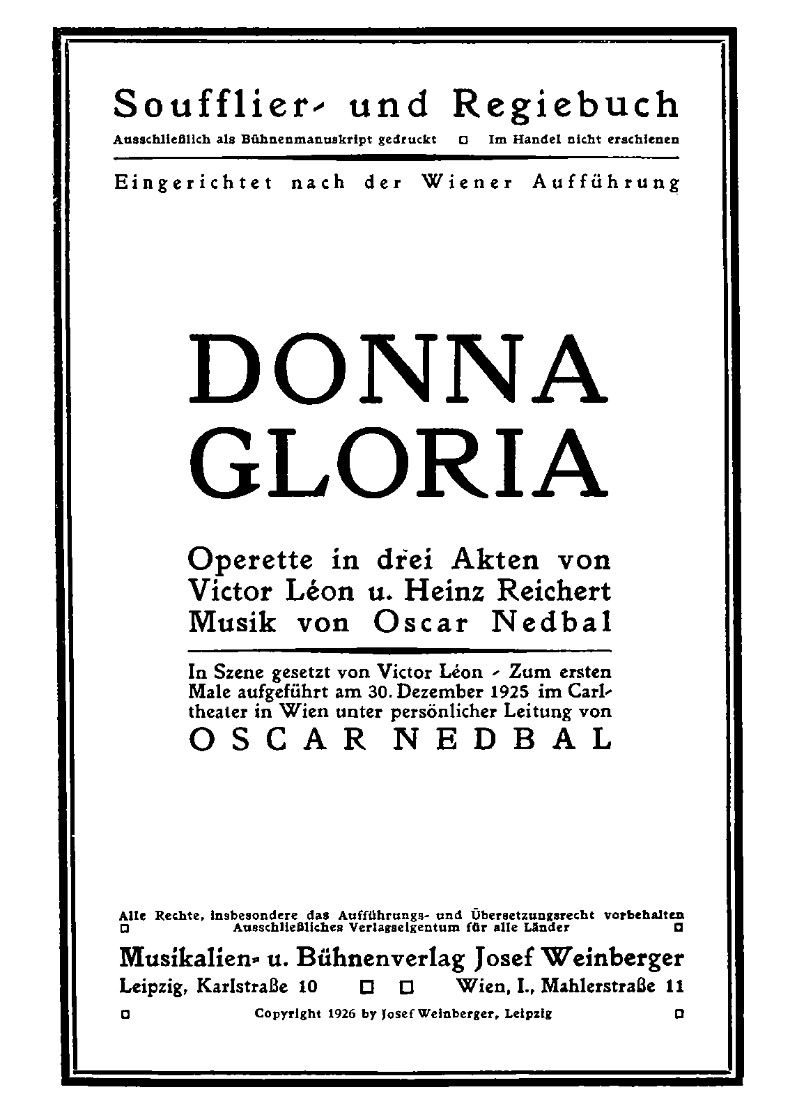 | First Performance. | 1925/12/30 — Vienna, Carltheater |