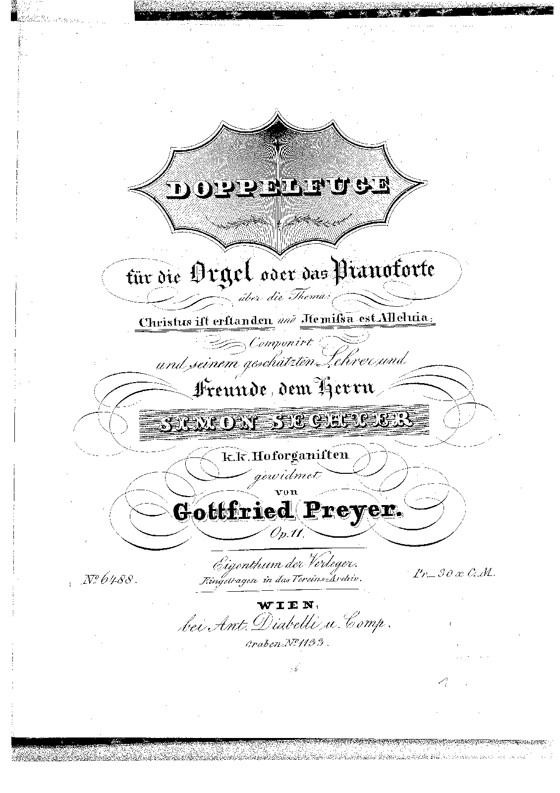 | Alternative. Title | Doppelfuge für die Orgel oder das Pianoforte über die Thema: Christus ist erstanden und Ite Missa est Alleluja |