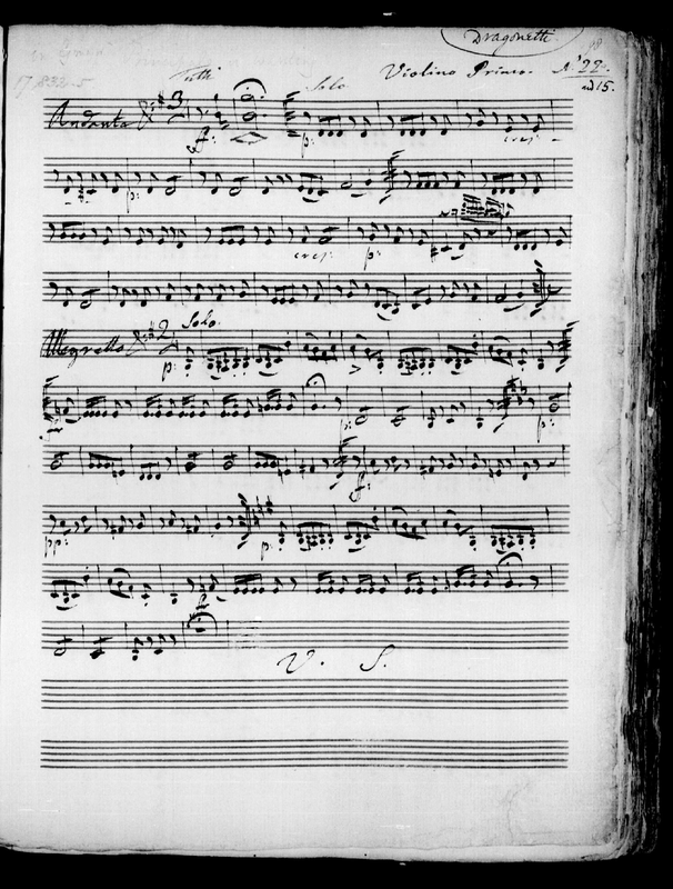The British Library, London (GB-Lbl): Add MS 17832 The string parts also include Solo No.15 for string quintet, which has been excluded here to the extent possible.