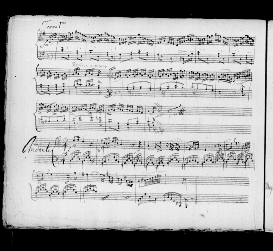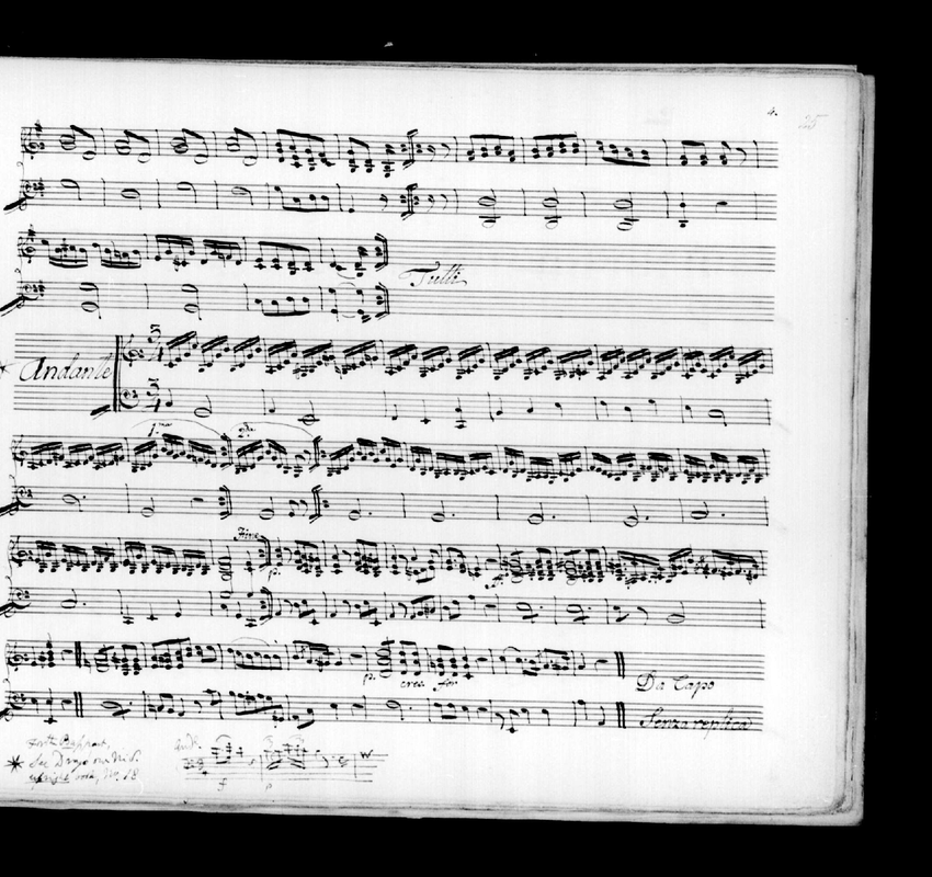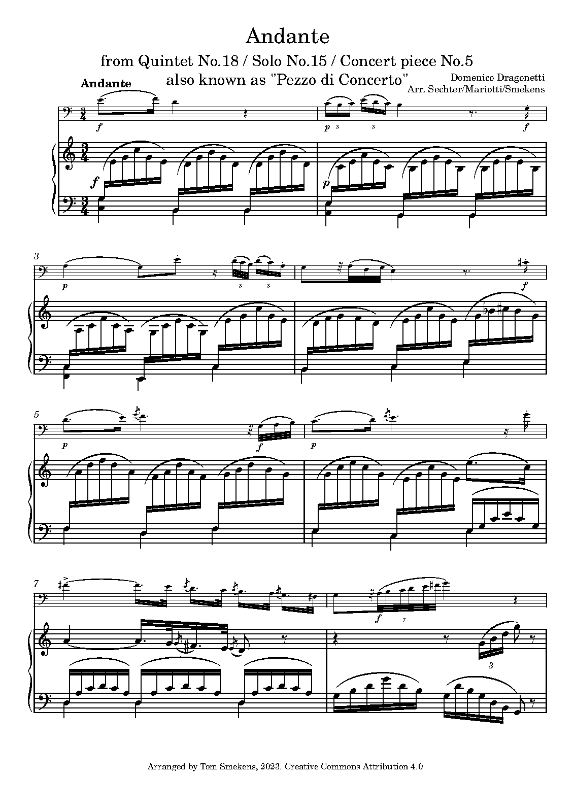 The British Library, London (GB-Lbl): Add MS 17824 The handwritten catalogue (not in Dragonetti's hand) for this volume combines this with the piano accompaniment of the preceding piece, Double Bass Concerto No.4 in G major, as one piece, numbered 10. However, Dragonetti's own catalogue of the orchestral versions contained in Add MS 17726 (the catalogue itself is bound in 17826) lists them as two different pieces, numbered 4 and 5. It is therefore possible that the arranger mistook them for one piece.