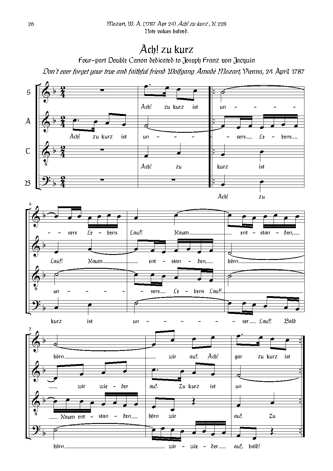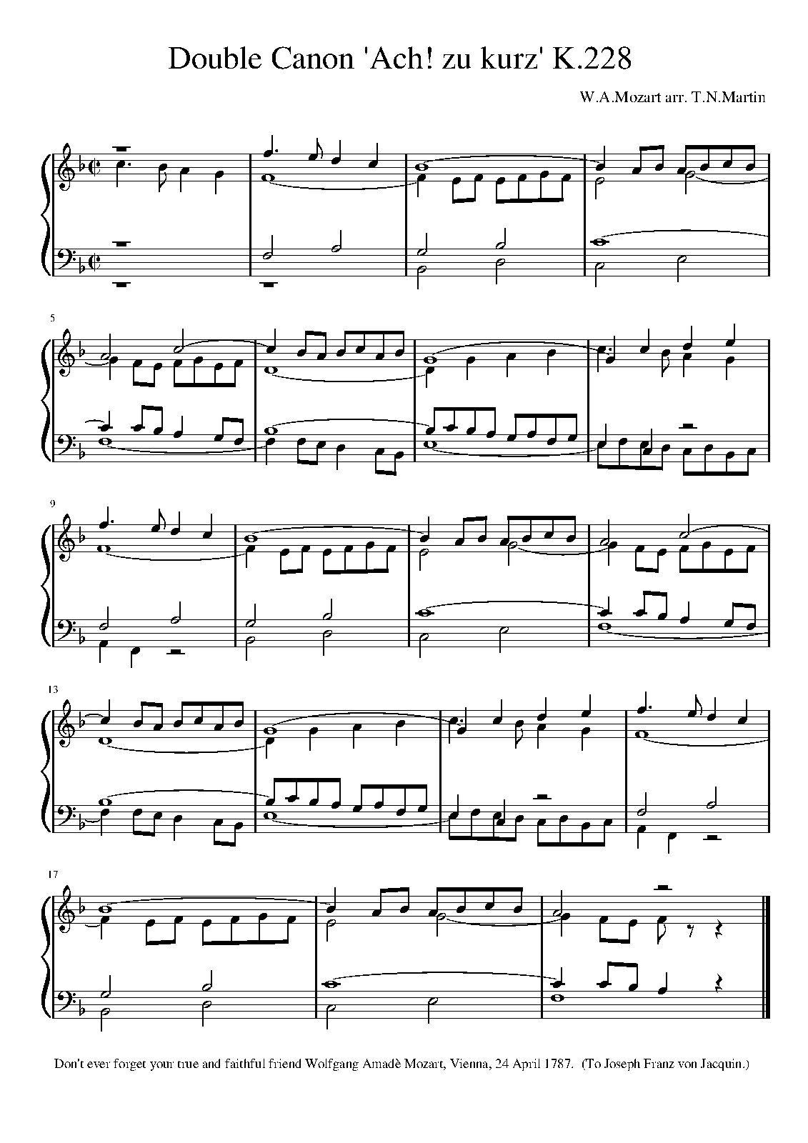 Double Canon for 4 Voices, K.228/515b (Mozart, Wolfgang Amadeus)