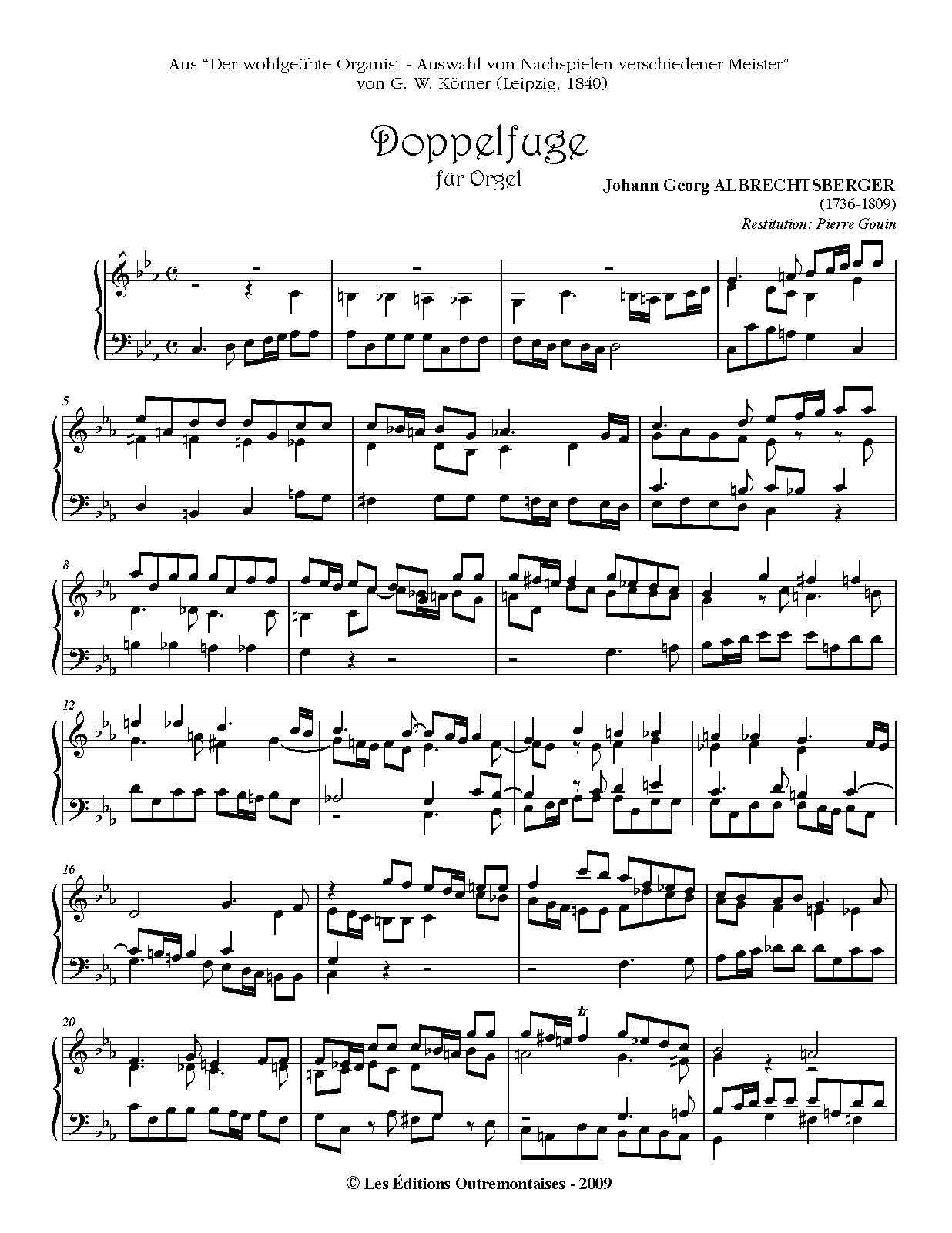 | Alternative. Title | Doppelfuge aus “Der wohlgeübte Organist - Auswahl von Nachspielen verschiedener Meister” von G. W. Körner |