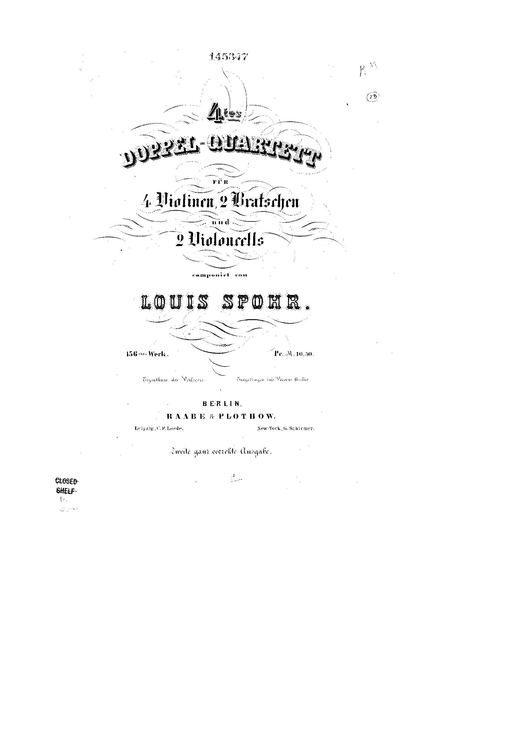 | Genre Categories | Quartets; For 4 violins, 2 violas, 2 cellos; Scores featuring the violin; |