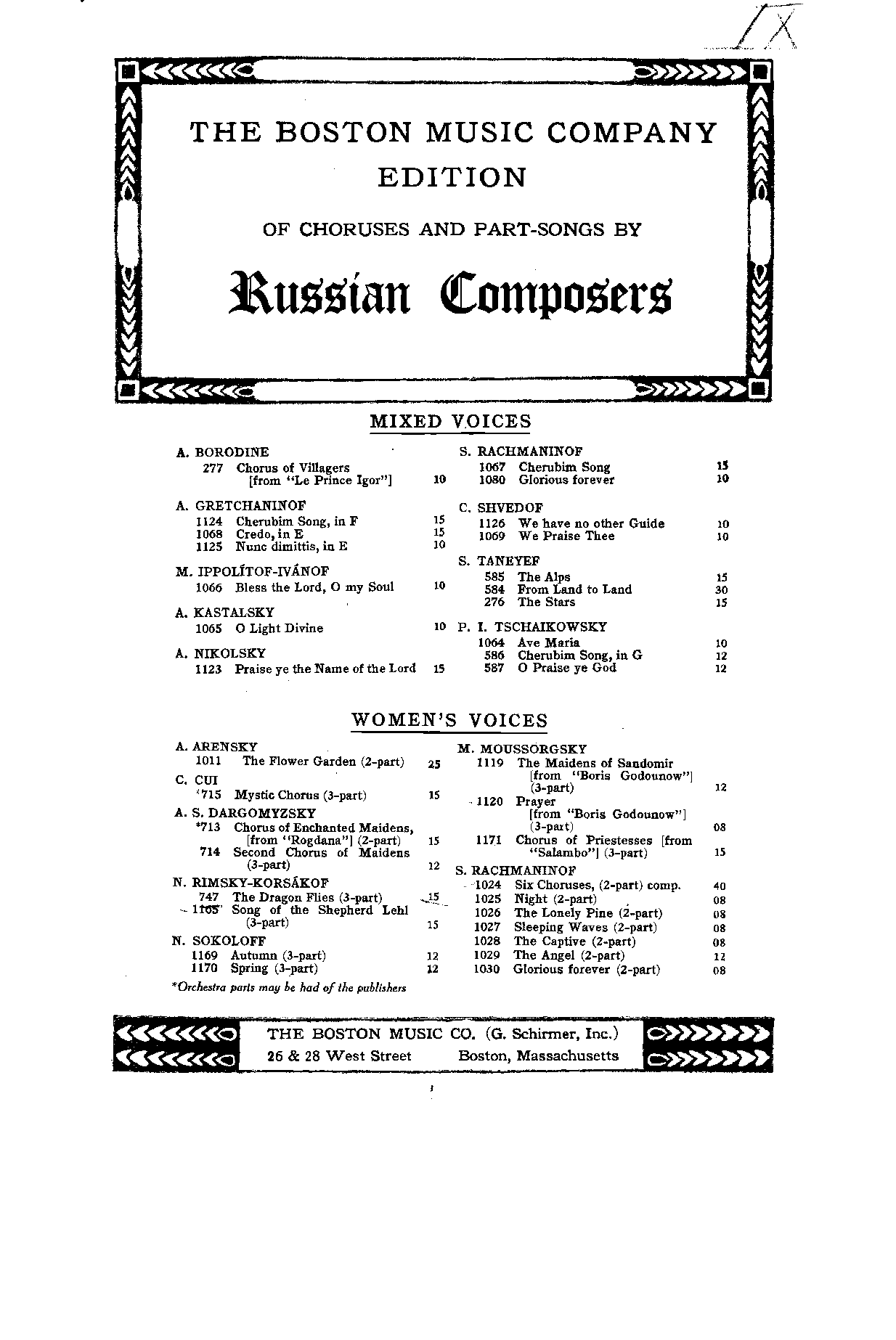 | First Publication. | 1898 – Leipzig: M.P. Belaieff. Full score. Plate 1723. 1898 – Leipzig: M.P. Belaieff. Orchestral parts. Plate 1724. 1898 – Leipzig: M.P. Belaieff. Vocal score. Plate 1725. 1899 – Leipzig: M.P. Belaieff. Choral parts. Plate 1982. |