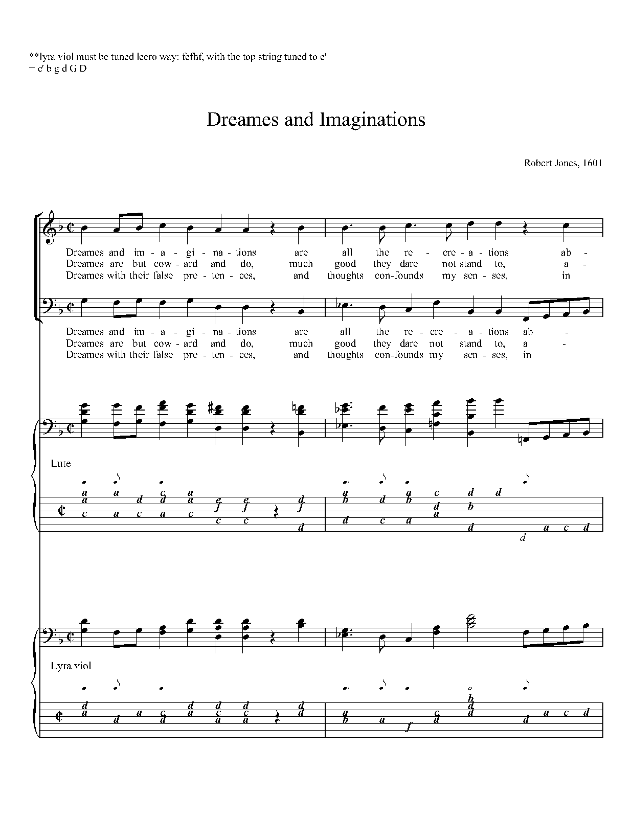 | Extra Information | Soprano and bass voices are both texted. The lyra viol must be tuned "leero way" with its highest string tuned to e: e' b g d G D. |