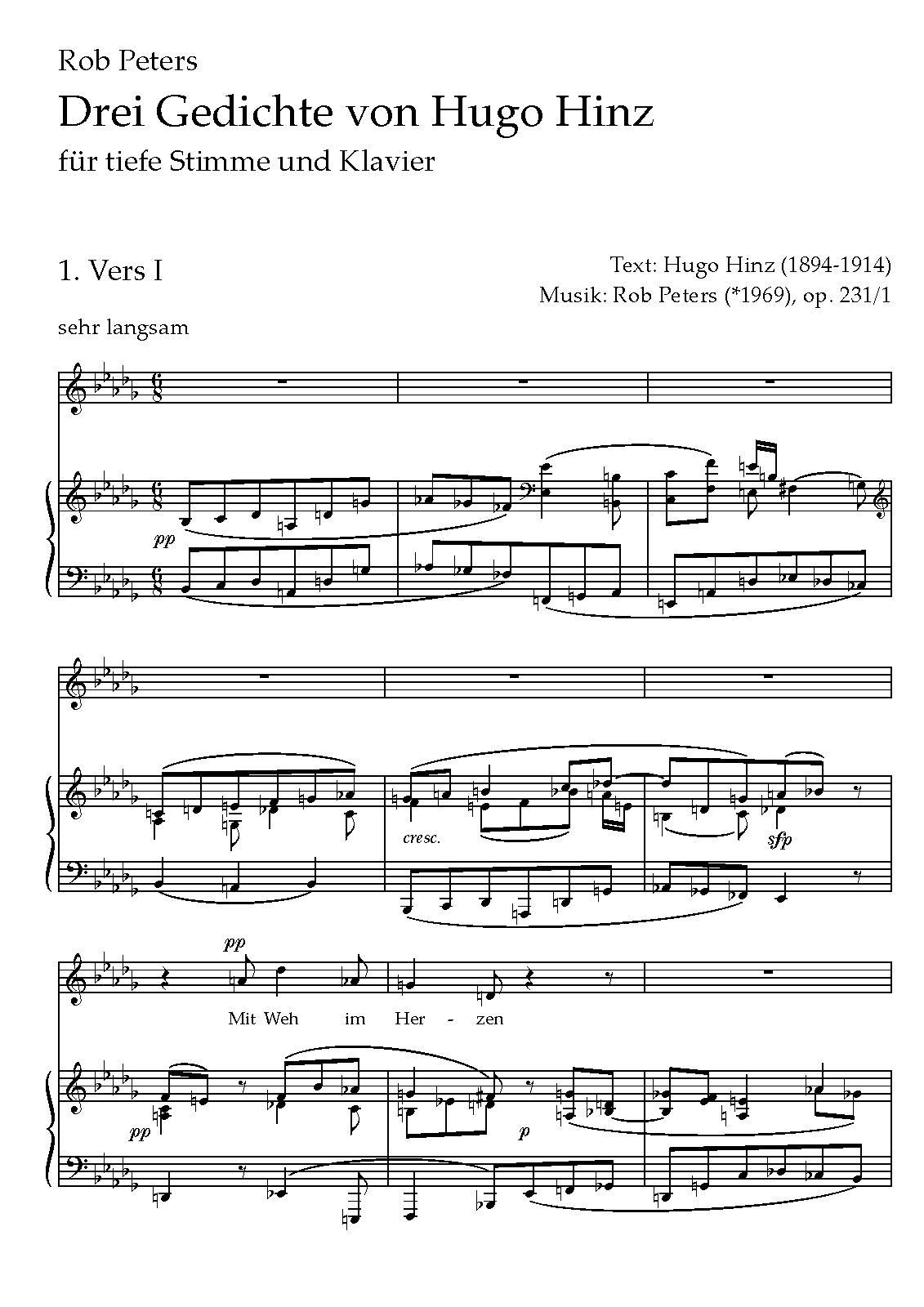 Drei gedichte von Hugo Hinz, für tiefe Stimme und Klavier