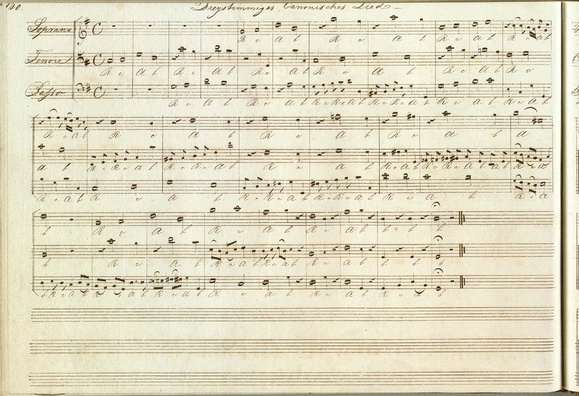 The lyrics, R-c---- A----b--- may seem puzzling. However, in the preface of his thematic catalogue, Verzeichniss über Zwei Hundert meiner Compositionen Gerson writes about this piece Haller's Bruder John Ries hatte als Ekelnahme: Richard Arschbock - auf diese machte ich einen Canonischen Satz für 3 Stimmen, und sang es in seinem Gegenwart bey Fürst zu Tische ab (The nickname of Haller's 1) brother John Ries was Richard Arschbock - I made a 3 part canon upon it and sang at his presence during a dinner at Fürst's 2))