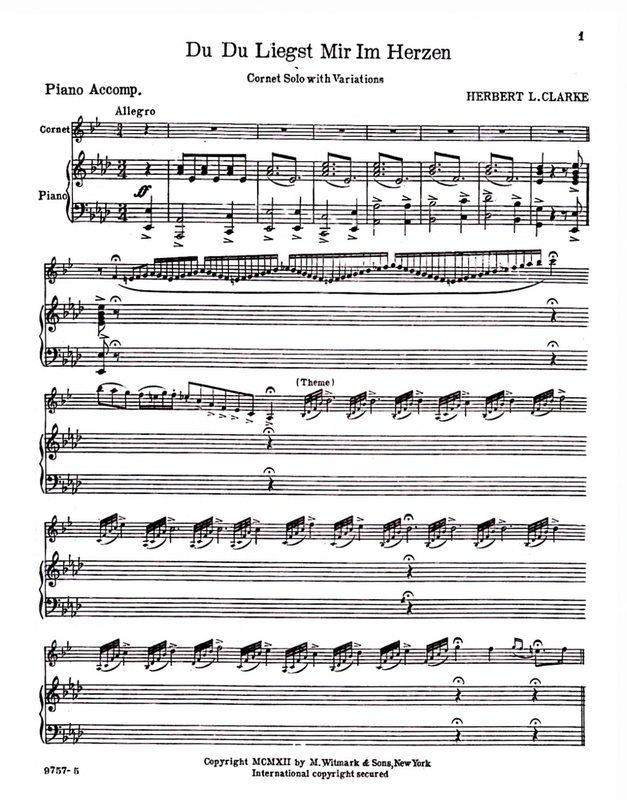 | Alternative. Title | Du Du Liegst Mir Im Herzen. Variation, You You Lie In My Heart / Cornet Solo with Variations |