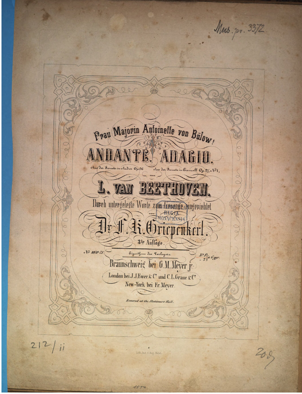 Liebesahnnung. Andante aus der Sonate in As dur Op.26 von L. van Beethoven. Durch untergelegte Worte zum Gesange eingerichtet von Dr. F. K. Griepenkerl