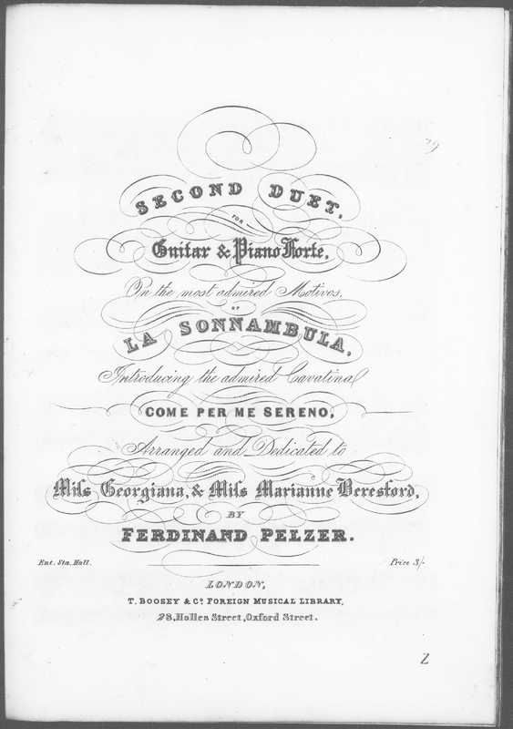 | Alternative. Title | Second Duet for Guitar and Piano Forte, on the most admired Motivos of "La Sonnambula" in which are introduced the admired Cavatina "Come per me sereno" |