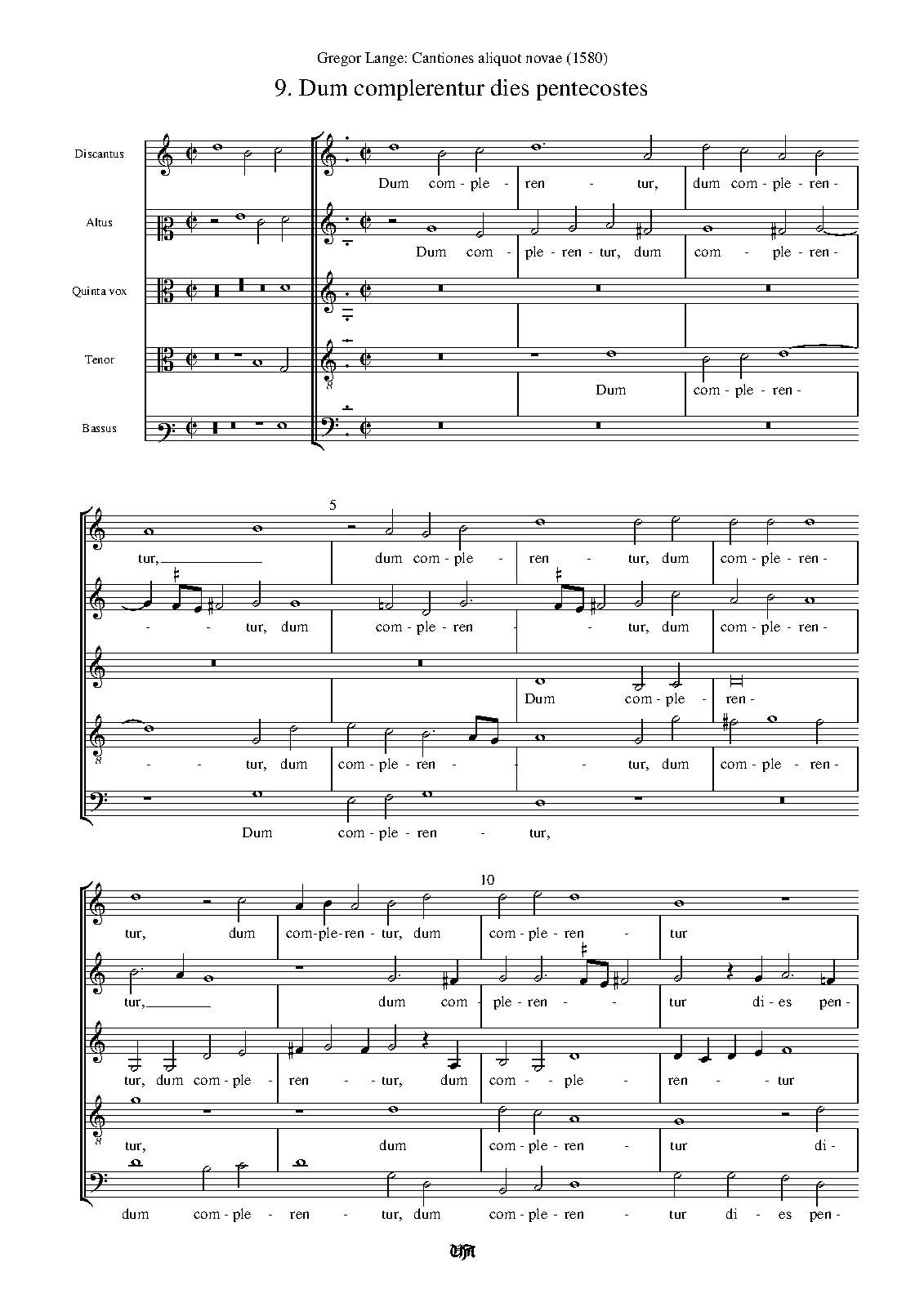| First Publication | 1580 in Cantiones aliquot novae (No.9) |