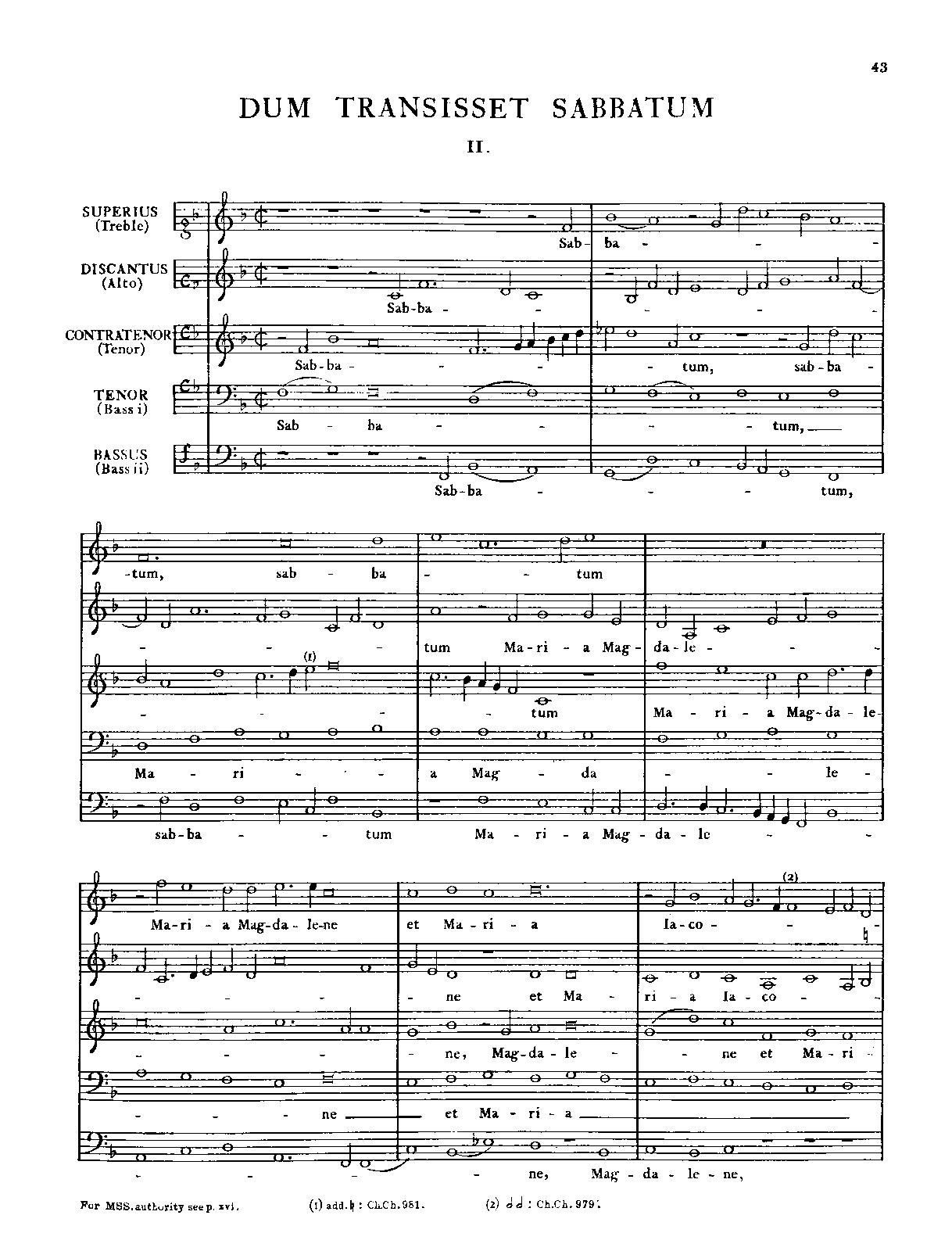 | Work Title | Dum transisset Sabbatum |