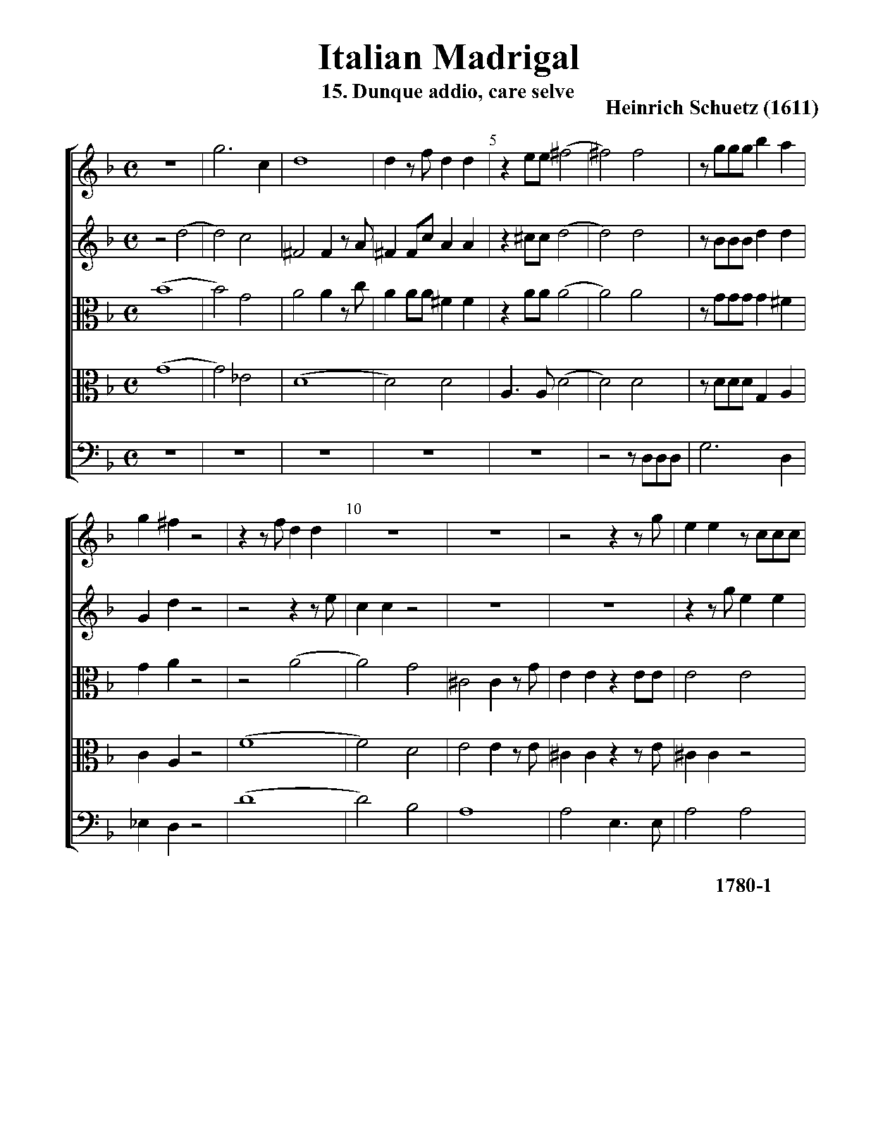 | First Publication | 1611 in Italian Madrigals, Op.1 (No.15) |