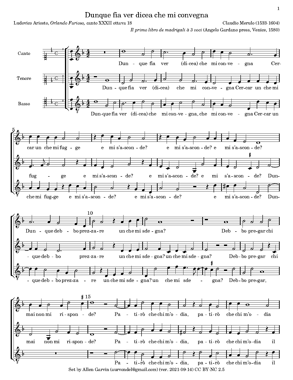 | Work Title | Dunque fia ver (dicea) che mi convegna |