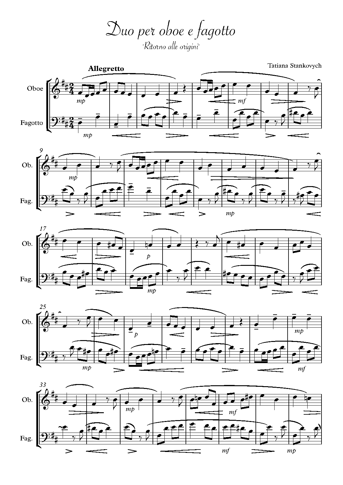 | Alternative. Title | Duet for oboe and bassoon "Ritorno alle origini" |