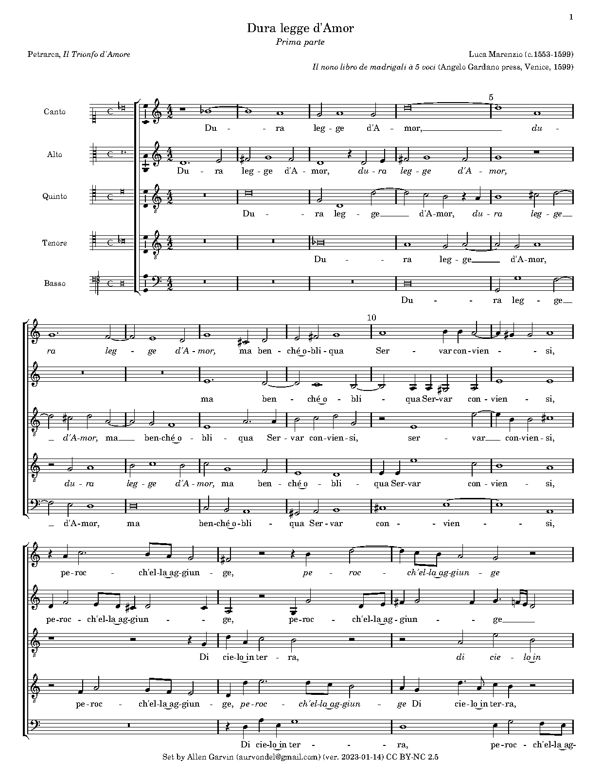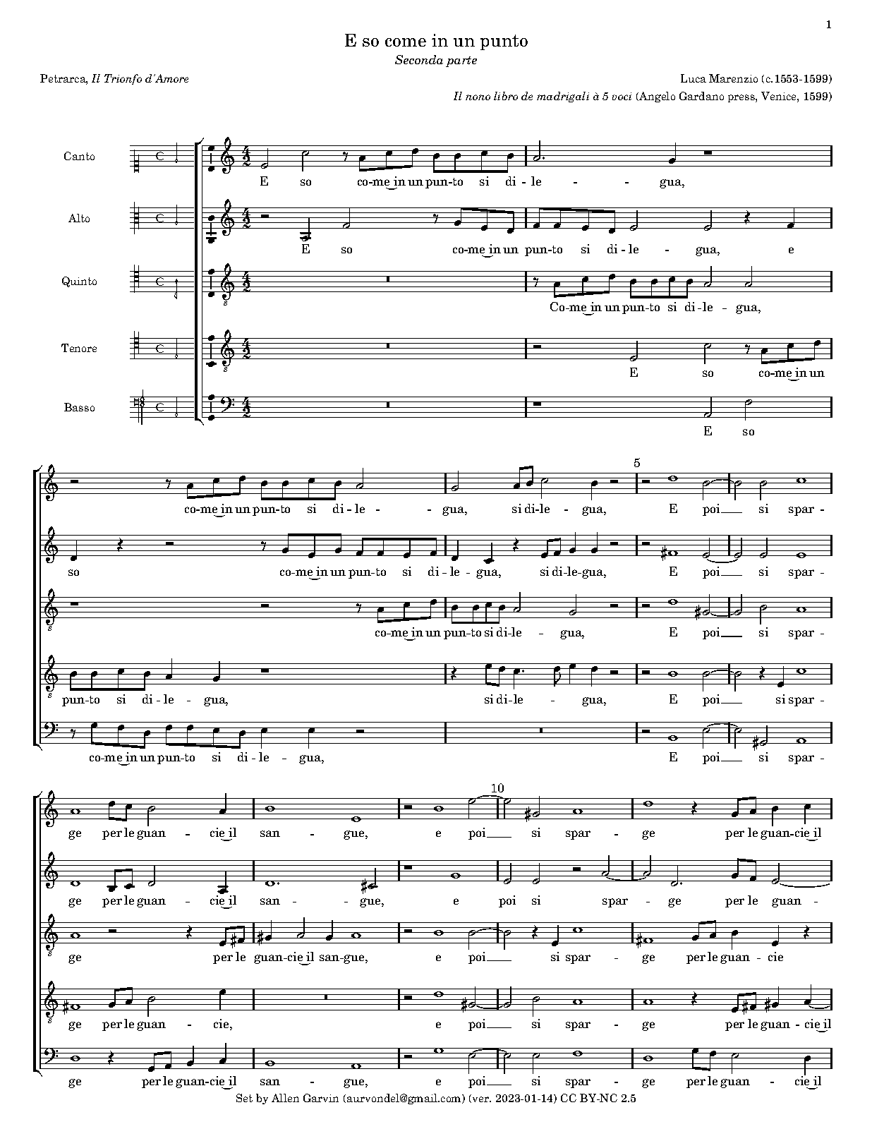 | First Publication | 1599 in Madrigali a 5 voci, Libro 9 |