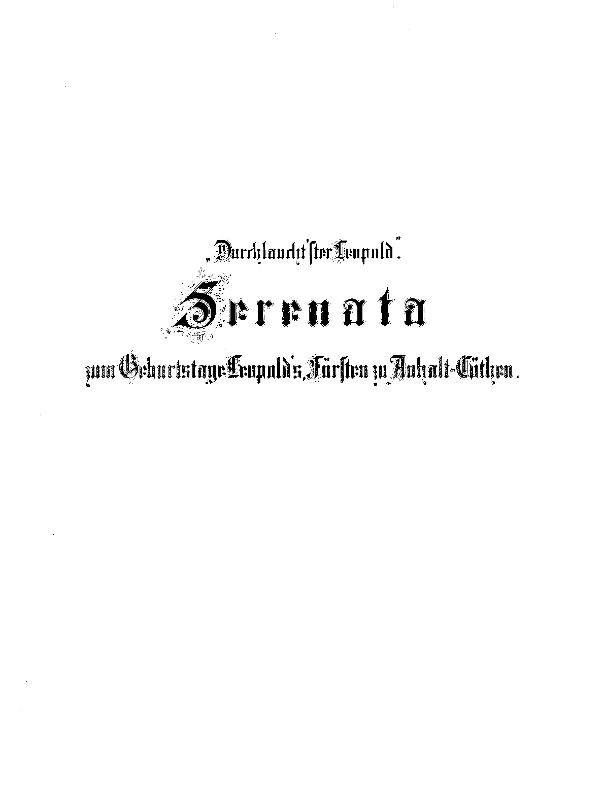 8 more: 2. Aria: 'Güldner Sonnen frohe Stunden' • 3. Aria: 'Leopolds Vortrefflichkeiten' • 4. Aria: 'Unter seinem Purpursaum' • 5. Recitative: 'Durchlauchtigster, den Anhalt Vater nennt' • 6. Aria: 'So schau dies holden Tages Licht' • 7. Aria: 'Dein Name gleich der Sonnen geh' • 8. Chorus: 'Nimm auch, großer Fürst, uns auf' • Engraving files (MuseScore)