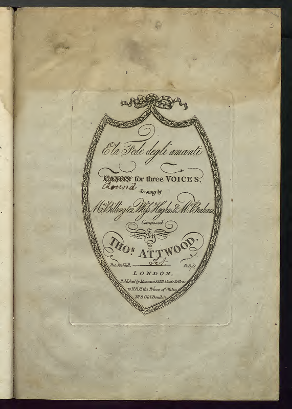 | Alternative. Title | E' la Fede degli amanti, Canon for three Voices, as sung by Mrs Billington, Miss Hughes & Mr Braham |