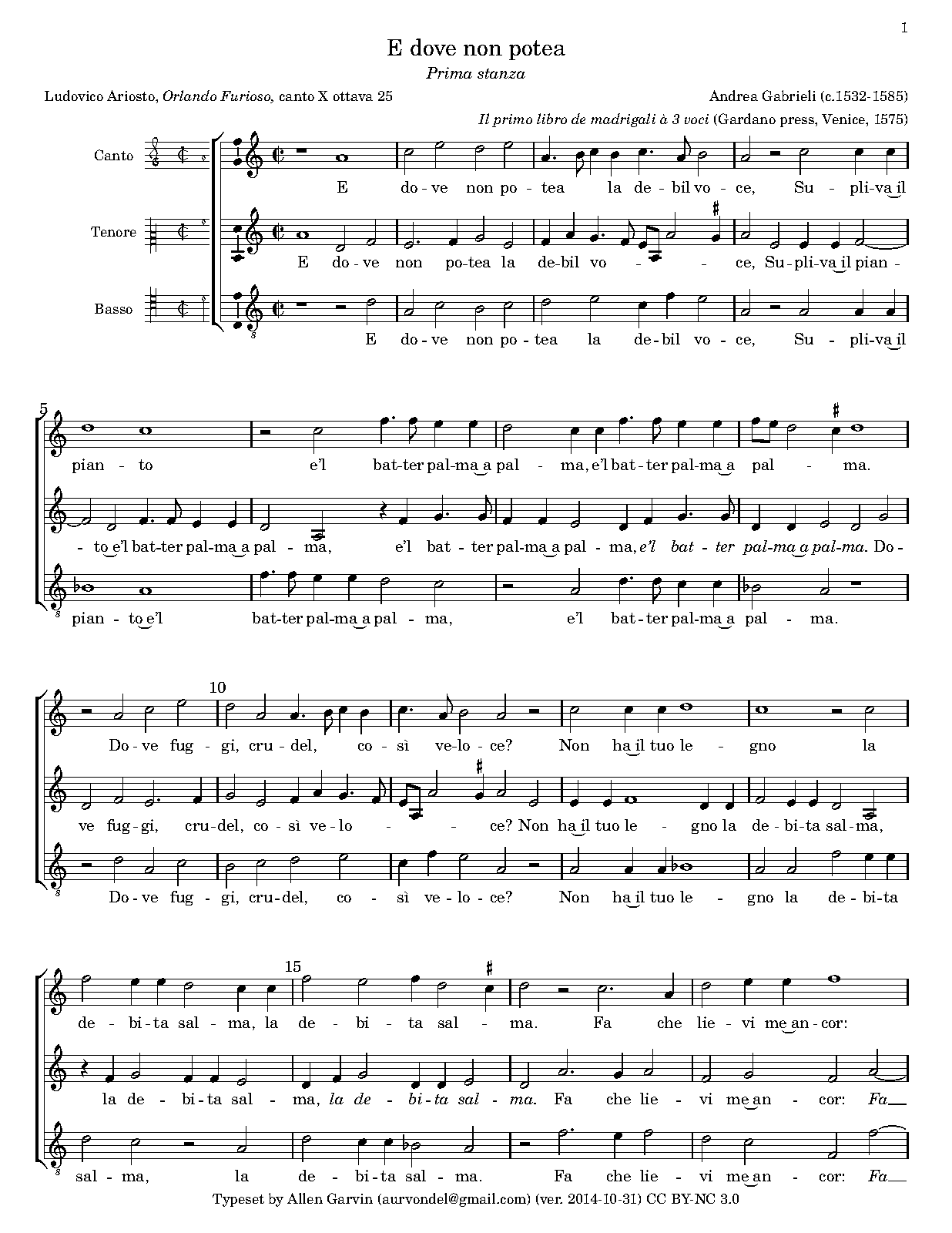 | First Publication | 1575 in Madrigali a 3 voci, Libro 1 (No.6) |