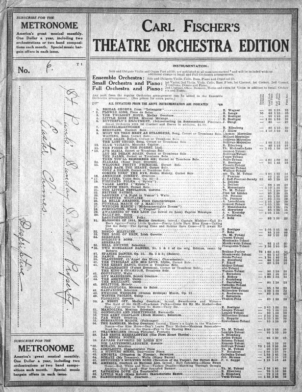 Publisher. Info. Carl Fischer's Theatre Orchestra Edition, No.1706