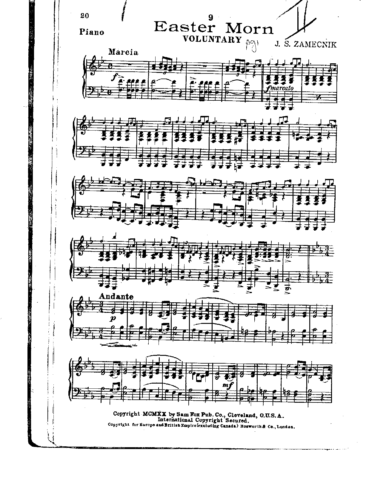 | First Publication. | 1920 – Cleveland: Sam Fox Publishing Co. |