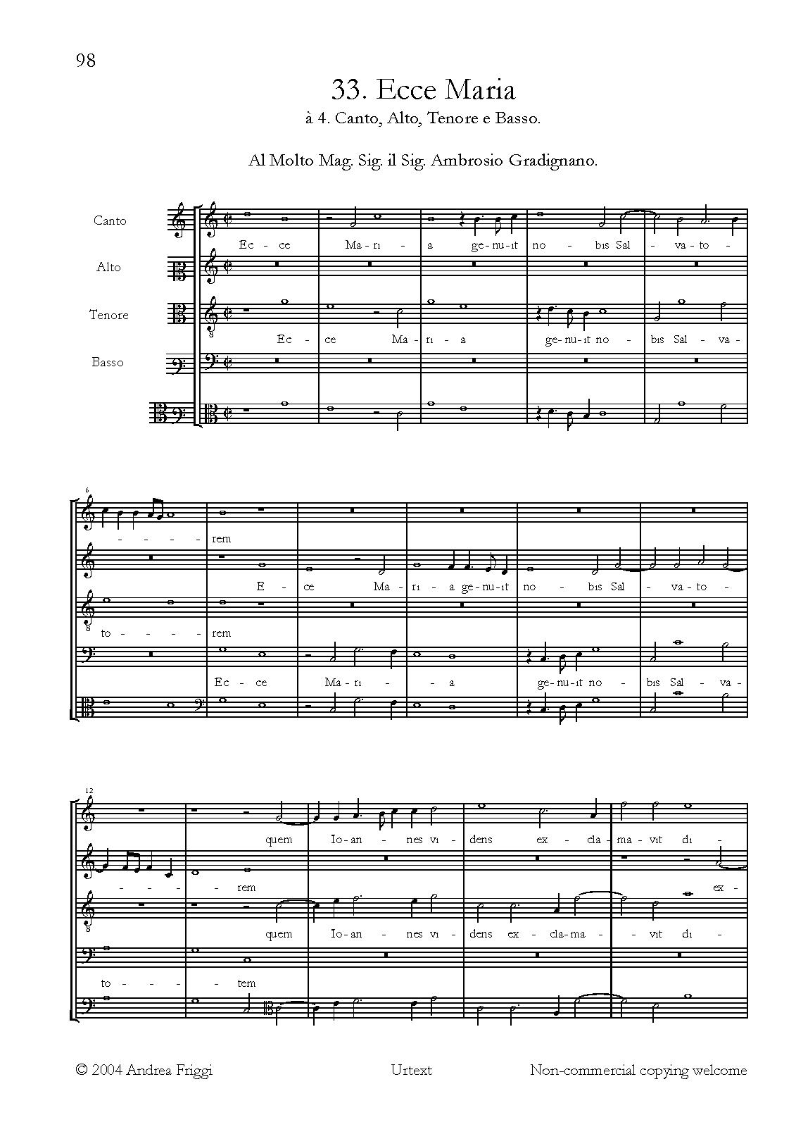 | First Publication | 1610 in Concerti Ecclesiastici (No.34) |