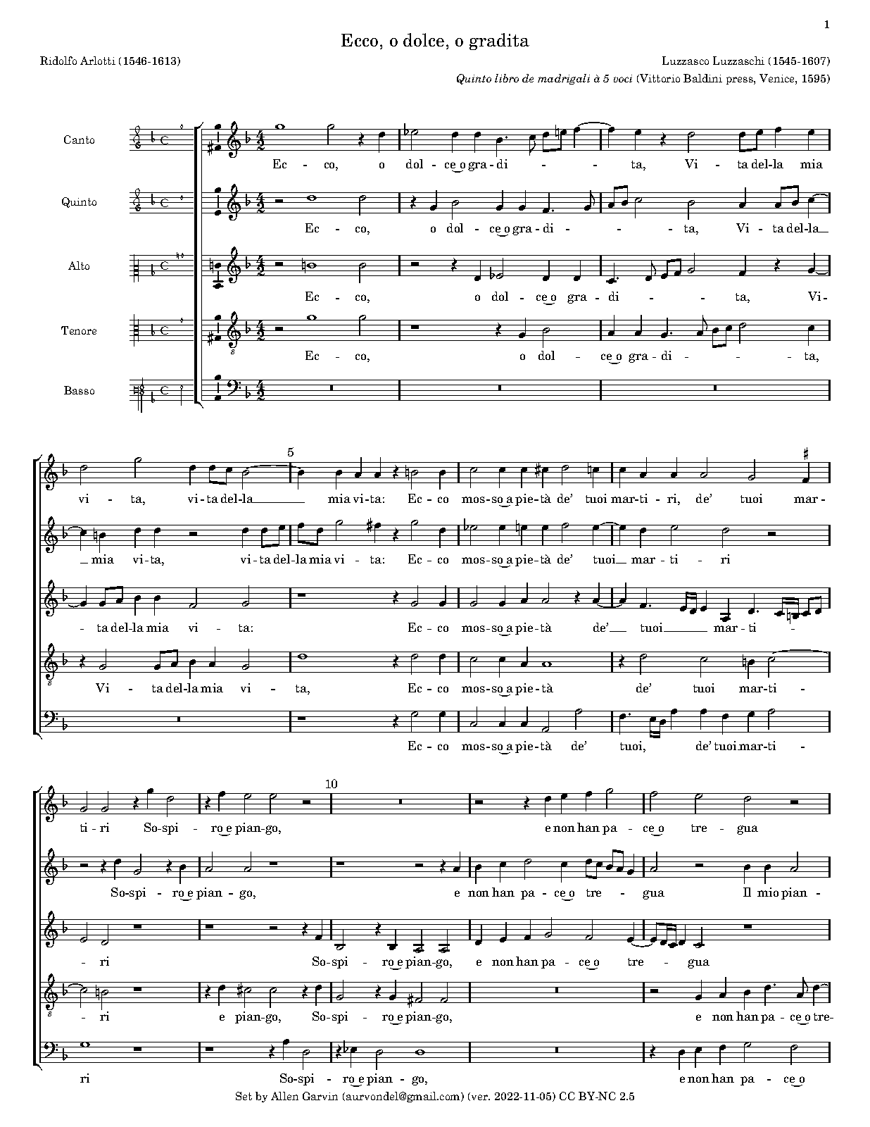 | First Publication | 1595 in Quinto libro de madrigali à 5 voci (Venice: Vittorio Baldini press) |
