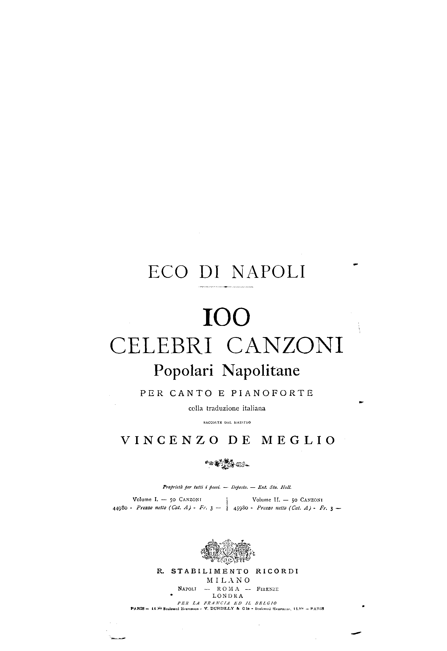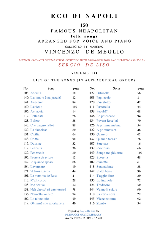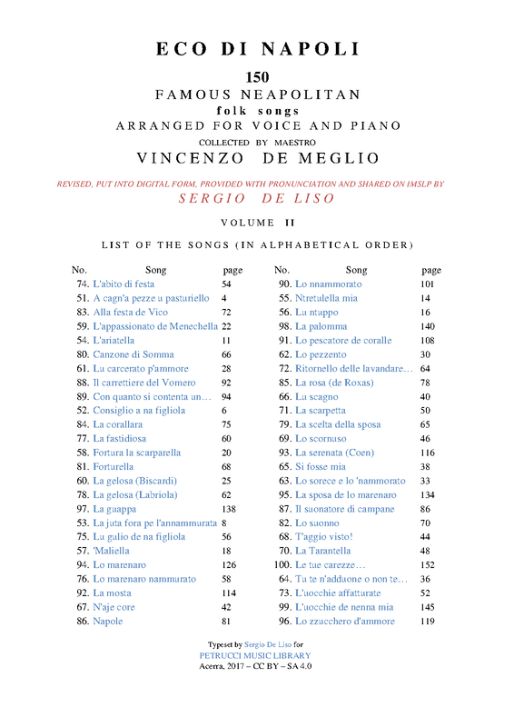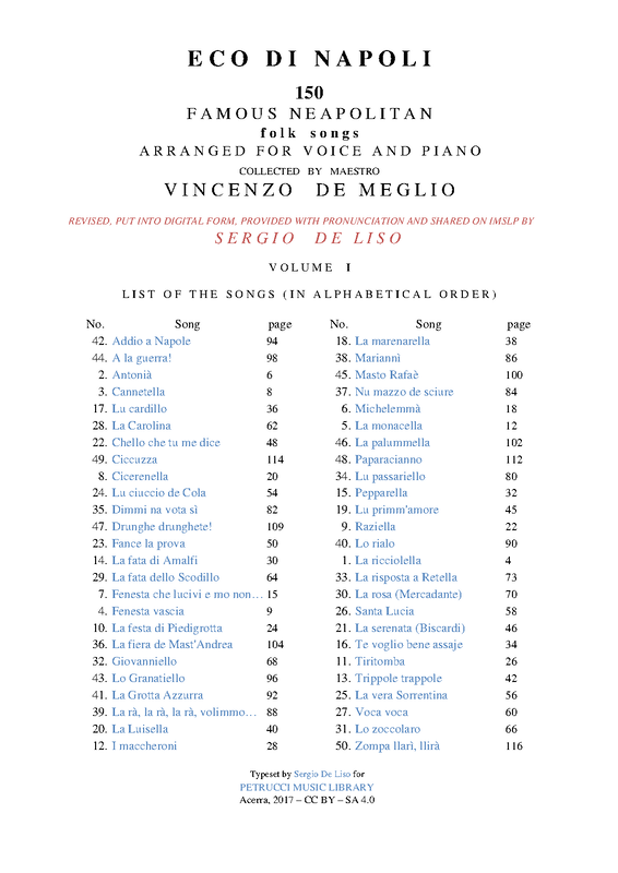 | Related Works | Passatempi musicali by Guillaume Louis Cottrau. Eco del Vesuvio. 6 Neapolitan Songs. |