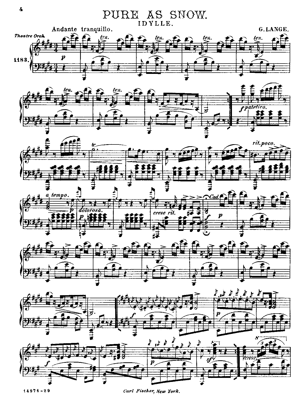 Carl Fischer Theatre Orchestra Edition, No.1183 New York: Carl Fischer, 1911. Plate 14974-29.