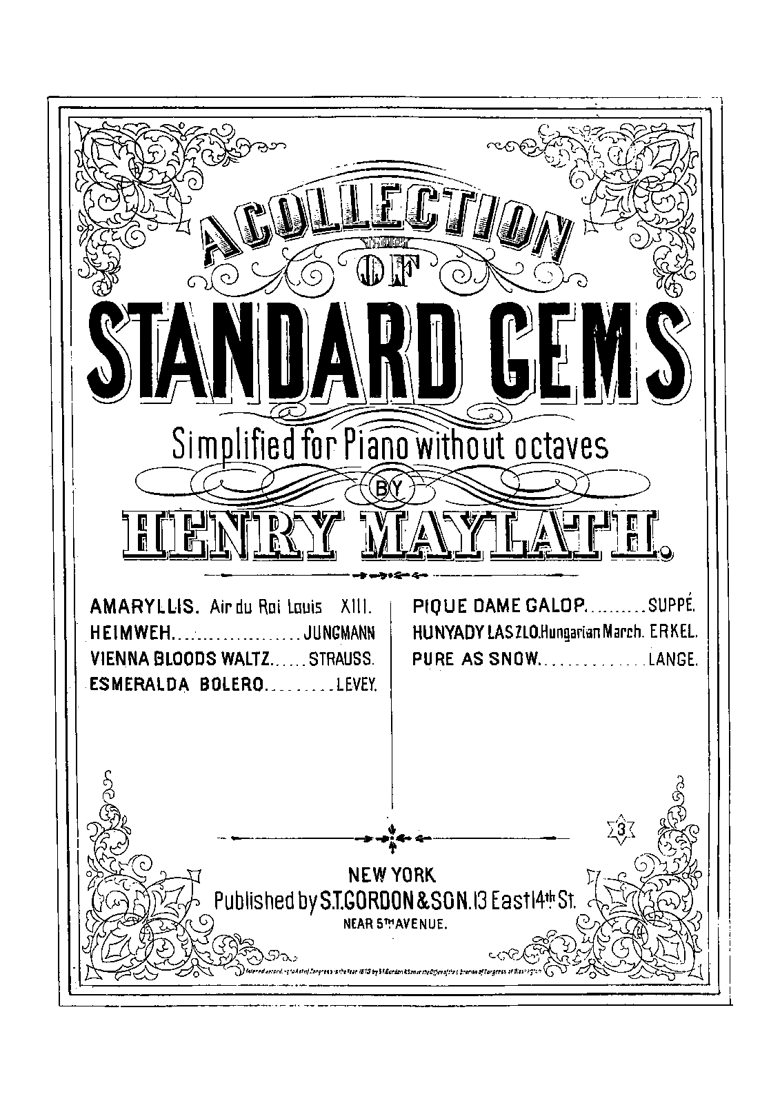 A Collection of Gems, Simplified for Piano without Octaves New York: S.T. Gordon & Son, 1874. Plate 5881 3.