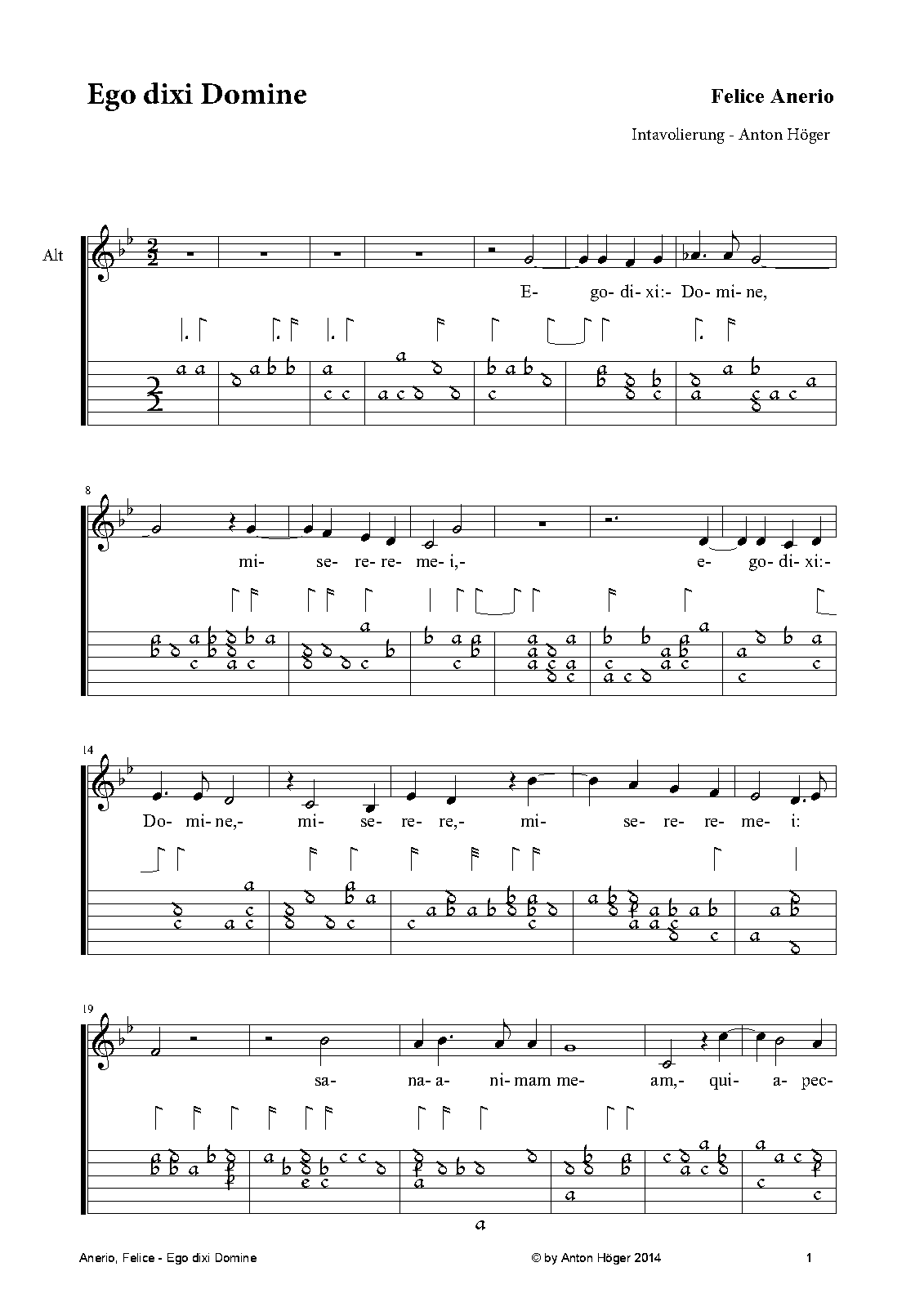 Misc. Notes Intabulation in French lute-tablature (g-Lute). The lute version is after a lute intabulation by Albert de Rippe. If performed I would look forward about a small reference to my efforts.
