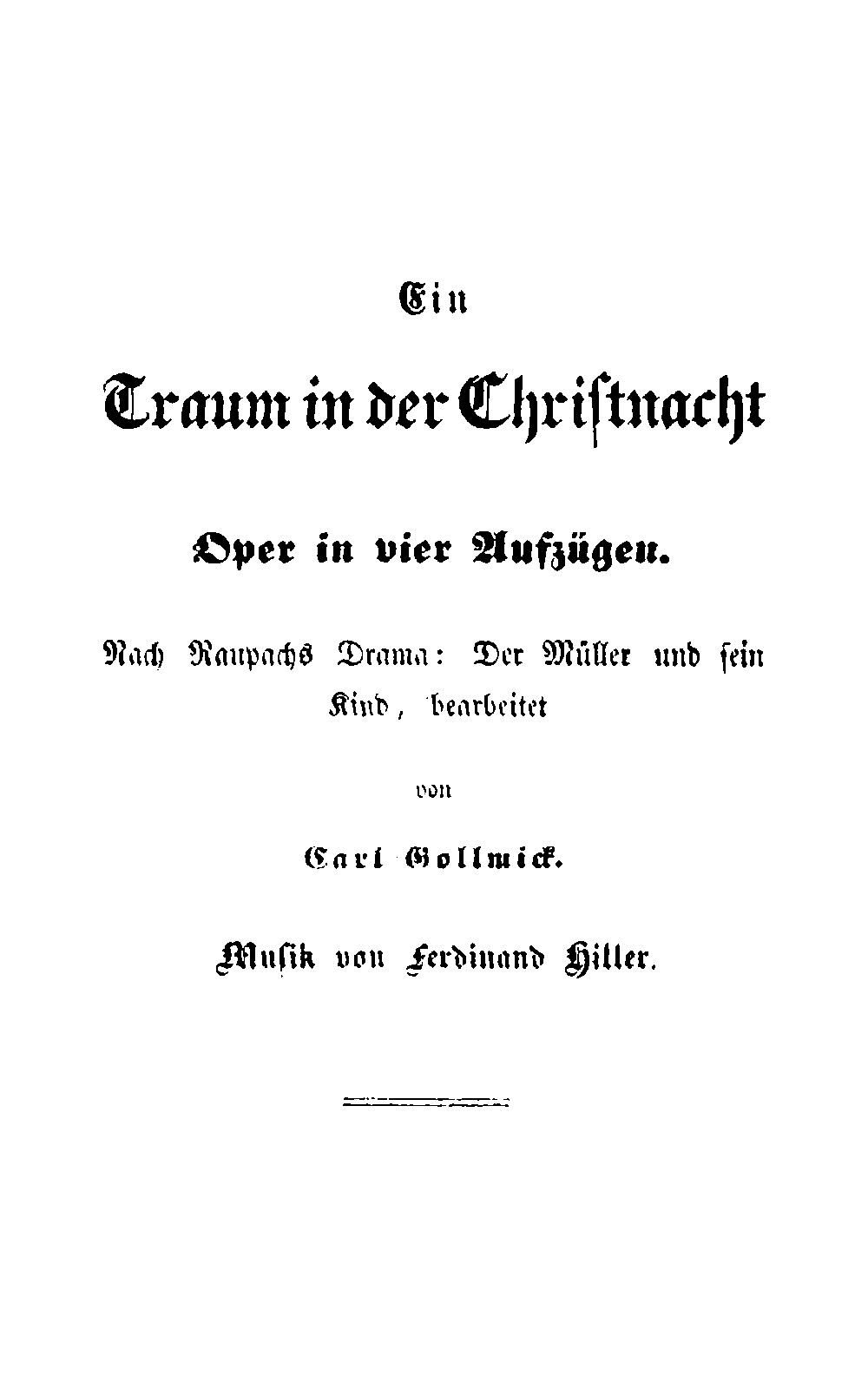 | Alternative. Title | Der Traum in der Christnacht. Oper in drei Aufzügen |