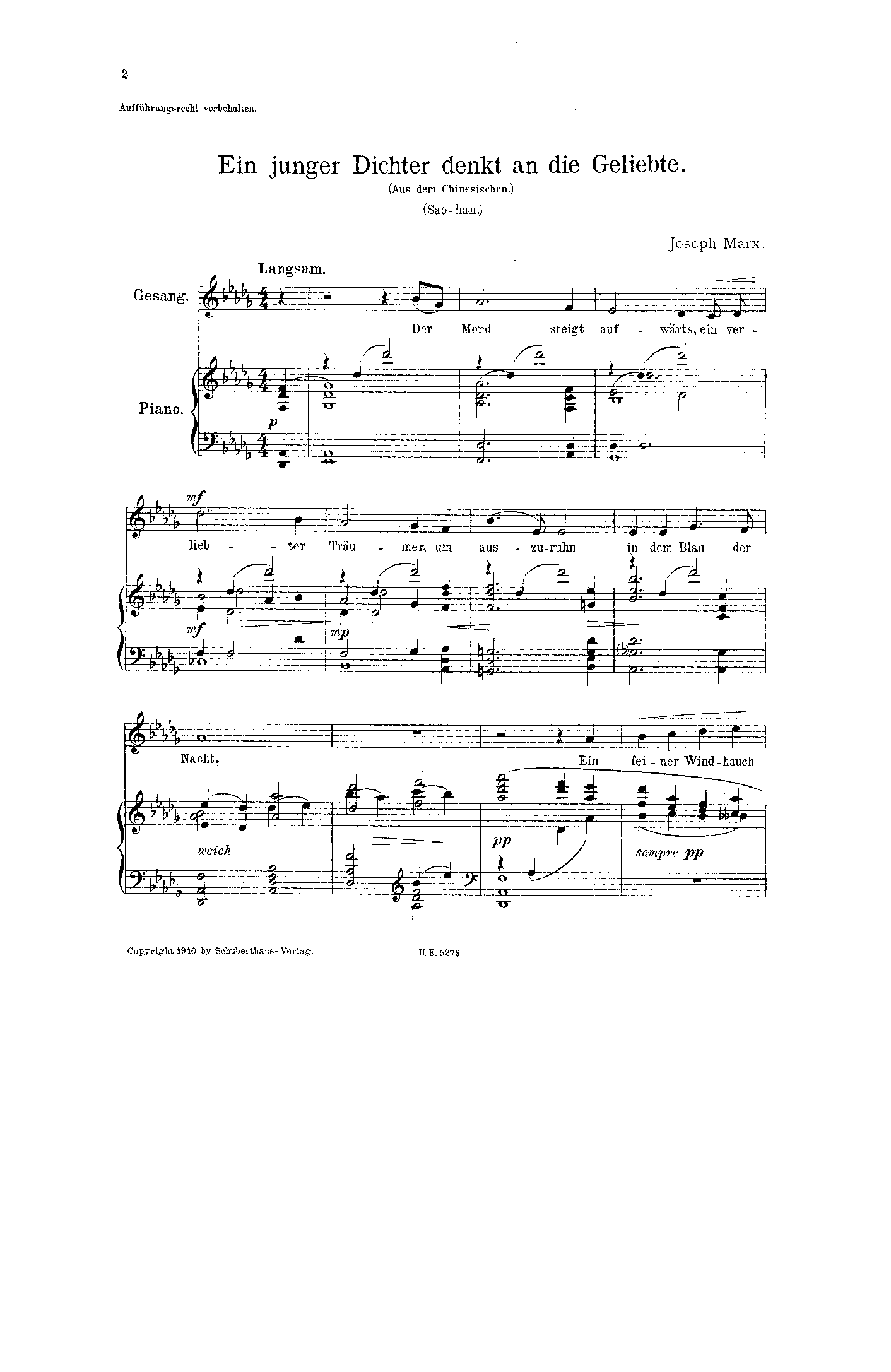 Leipzig/Vienna: Schuberthaus-Verlag, 1910. Plate Sch.237 V.
