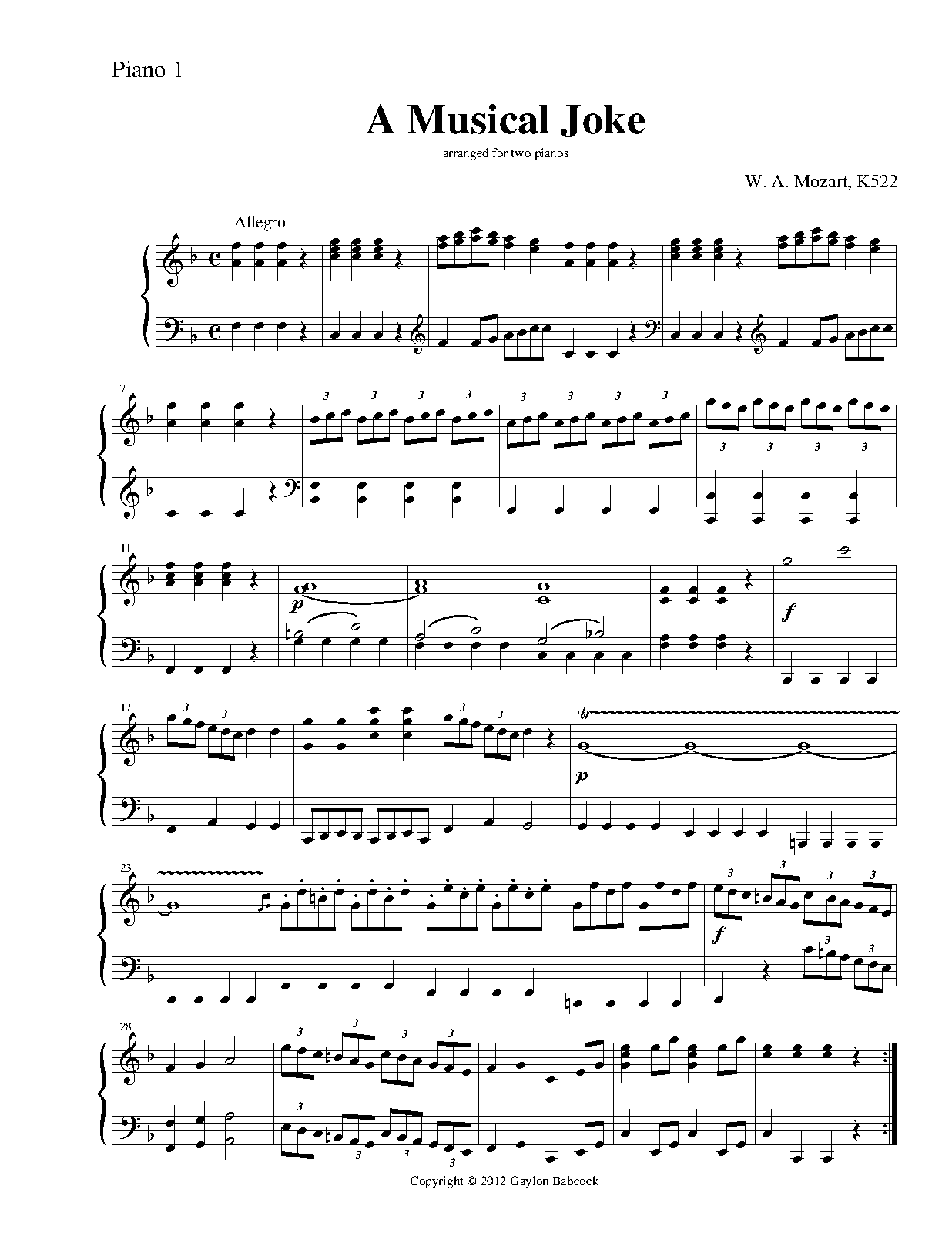Name Translations Ein musikalischer Spass; 音楽の冗談; Ein musikalsk spøk; 음악적 농담; Una broma musical; A Musical Joke; Uno scherzo musicale K 522; Żart muzyczny; Zenei tréfa; یک جوک موسیقایی; Muzika Ŝerco; F大調嬉遊曲; เรื่องตลกทางดนตรี; Jenaka Muzik; F大调嬉游曲; Bir Müzikal Şaka