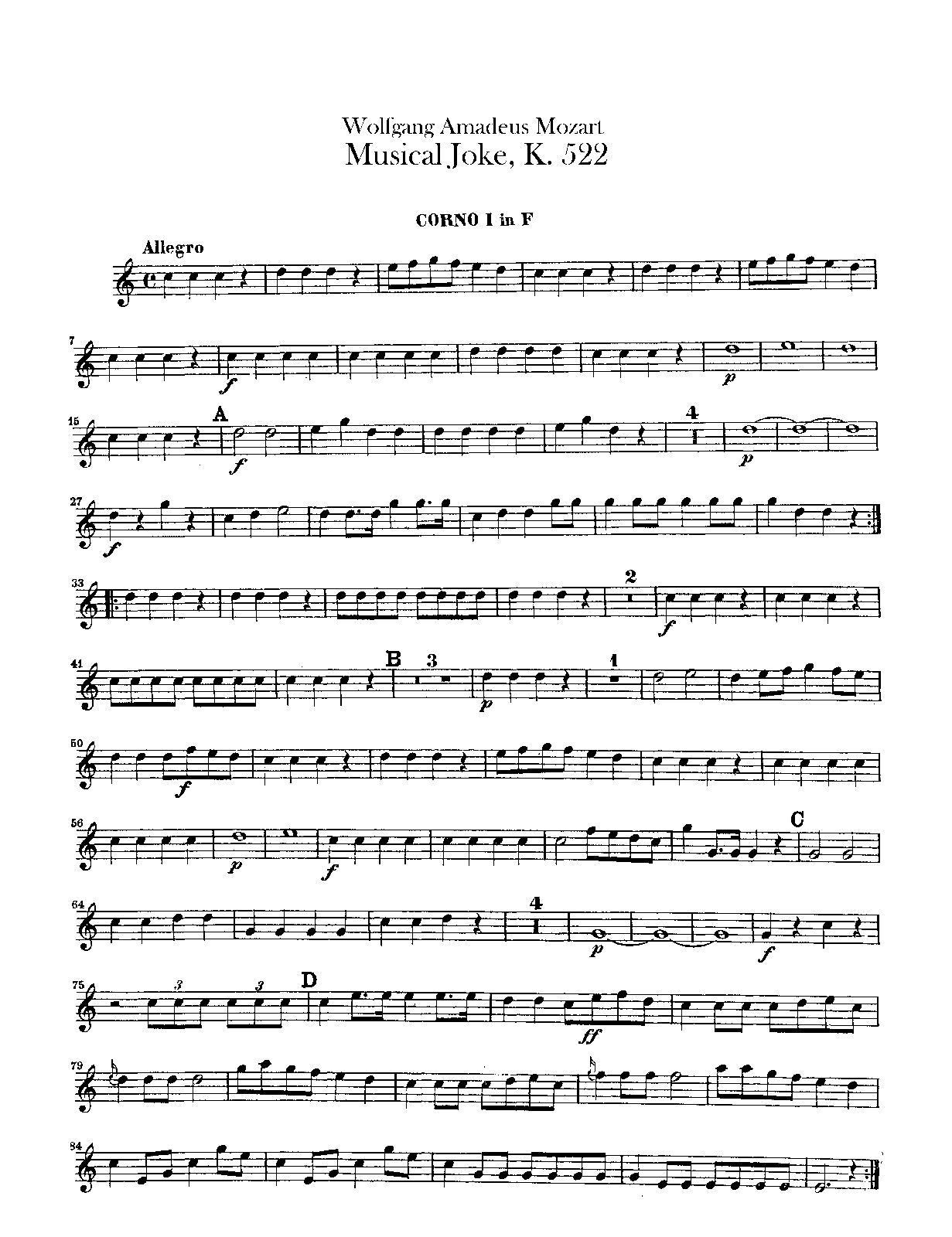 Name Aliases 음악의 유희; K. 522; Ein Musikalischer Spass; KV 522; K 522; Ein musikalischer Spass, K. 522; A Musical Joke, K. 522