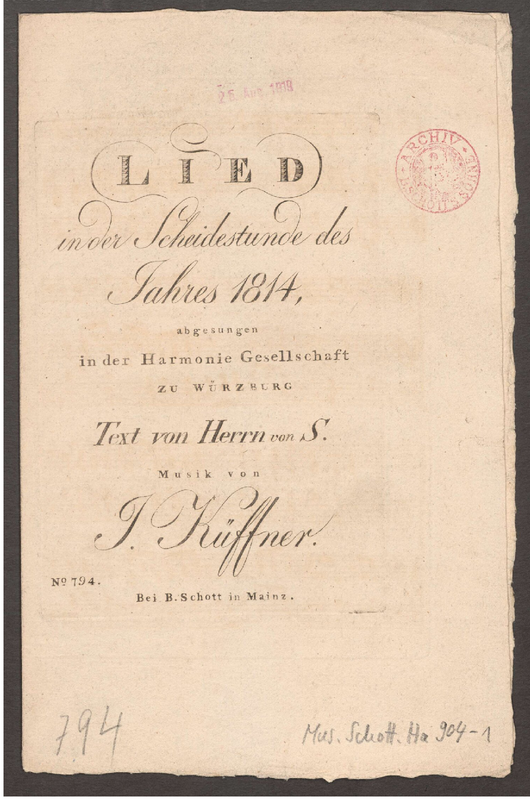 | Alternative. Title | Sylvester Lied; Lied in der Scheidestunde des Jahres 1814 abgesungen in der Harmonie Gesellschaft zu Würzburg |