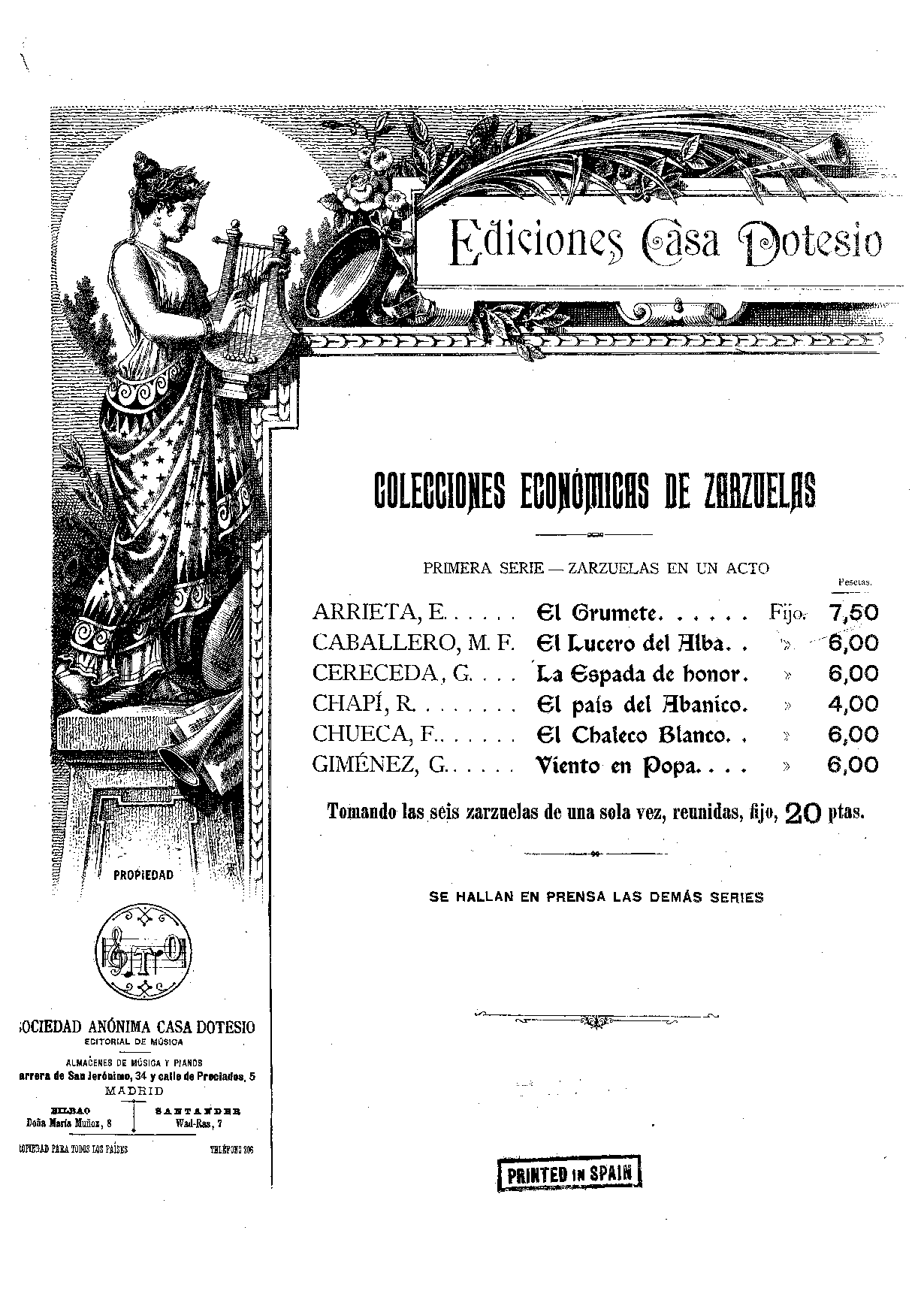 | Genre Categories | Zarzuelas; Theatrical Works; Revues; |