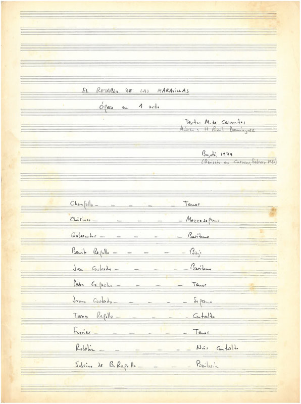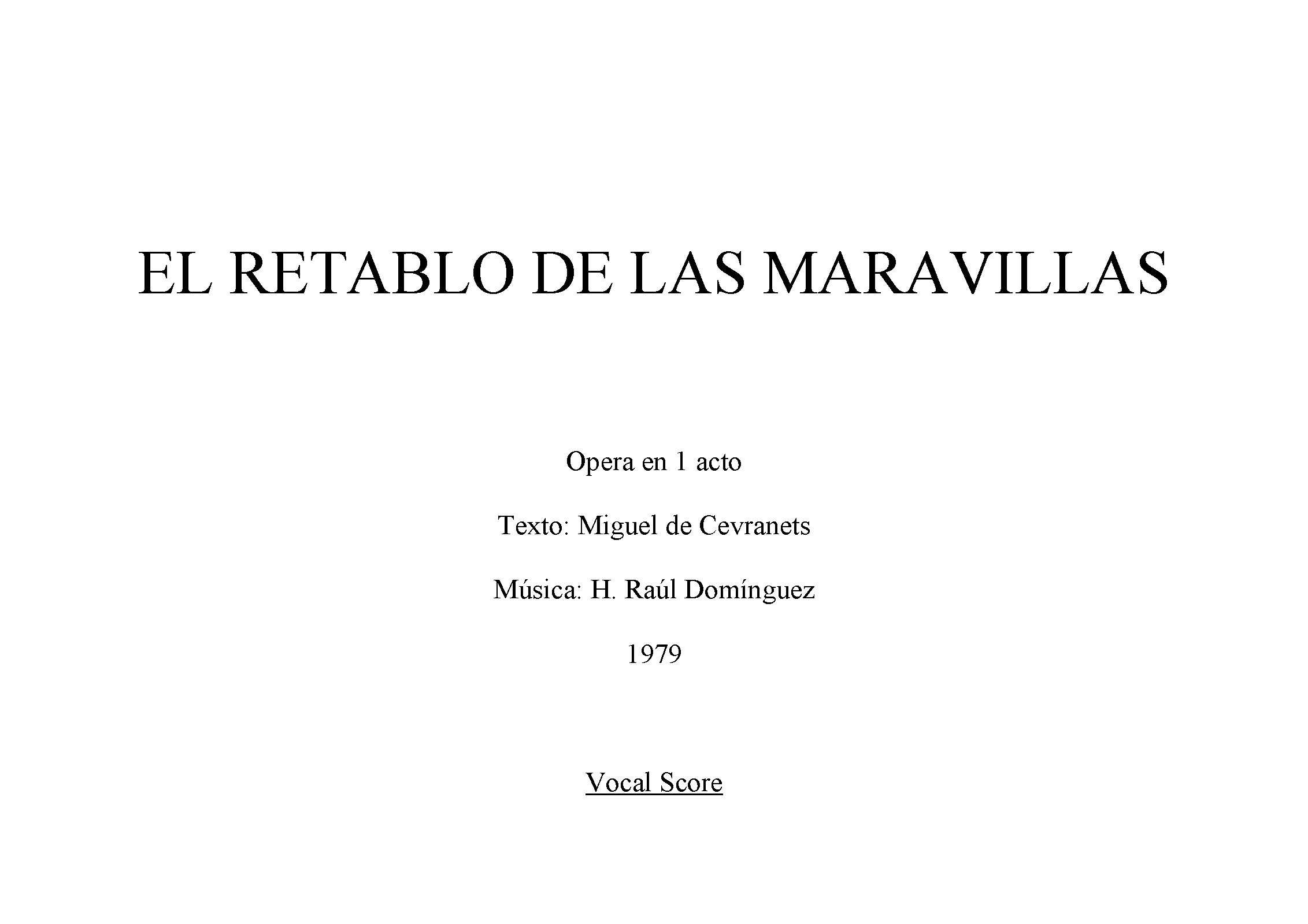 | Alternative. Title | One-act chamber opera on the text of M. de Cervantes |