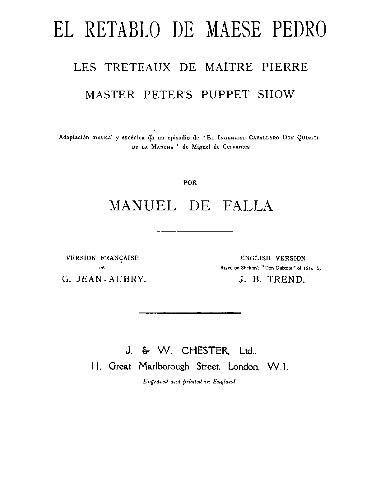 Retablo de Maese Pedro; El retablo del Maese Pedro; El retablo de maese pedro; Master Peter's Puppet Show; Les tréteaux de Maître Pierre