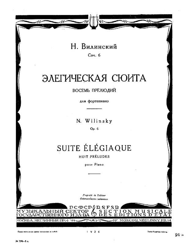 Elegiac Suite, Op.6 (Vilinsky, Mykola)