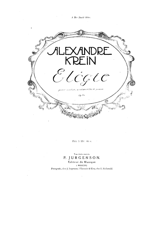 | Genre Categories | Elegies; Funeral music; For violin, cello, piano; |