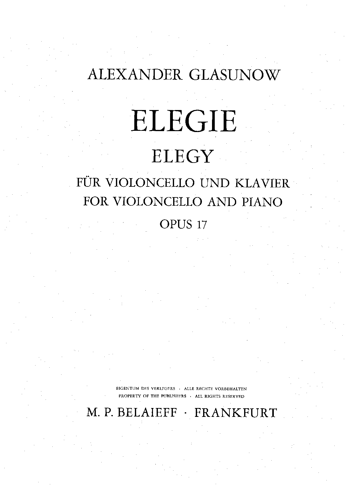 | Genre Categories | Elegies; Funeral music; For cello, piano; |