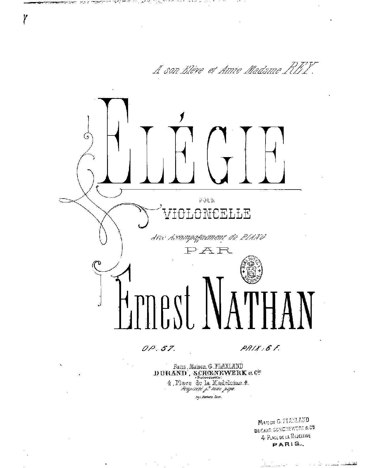 | Dedication | À son élève et amie Madame Rey |