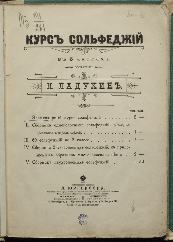 | Alternative. Title | Елементарный курсъ сольфеджий |