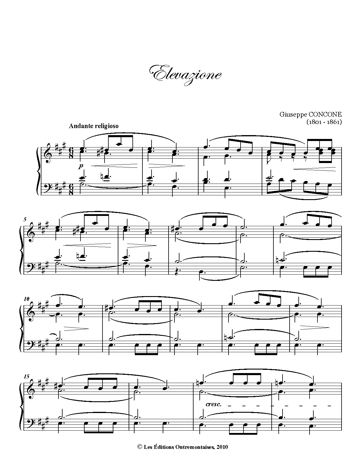 While Grove Music doesn't give a list of Concone's works apart from his two operas, it does say he was organist and maestro di cappella at the Sardinian Court from 1848. This piece was almost certainly originally for organ.