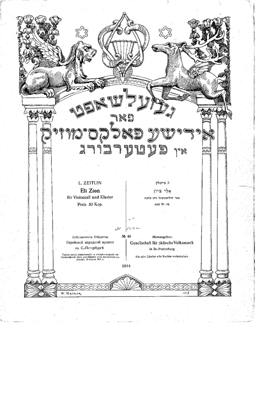 | Alternative. Title | Eli Zion Fantasie über eine Volksmelodie und Trop von "Schir ha-schirim" |