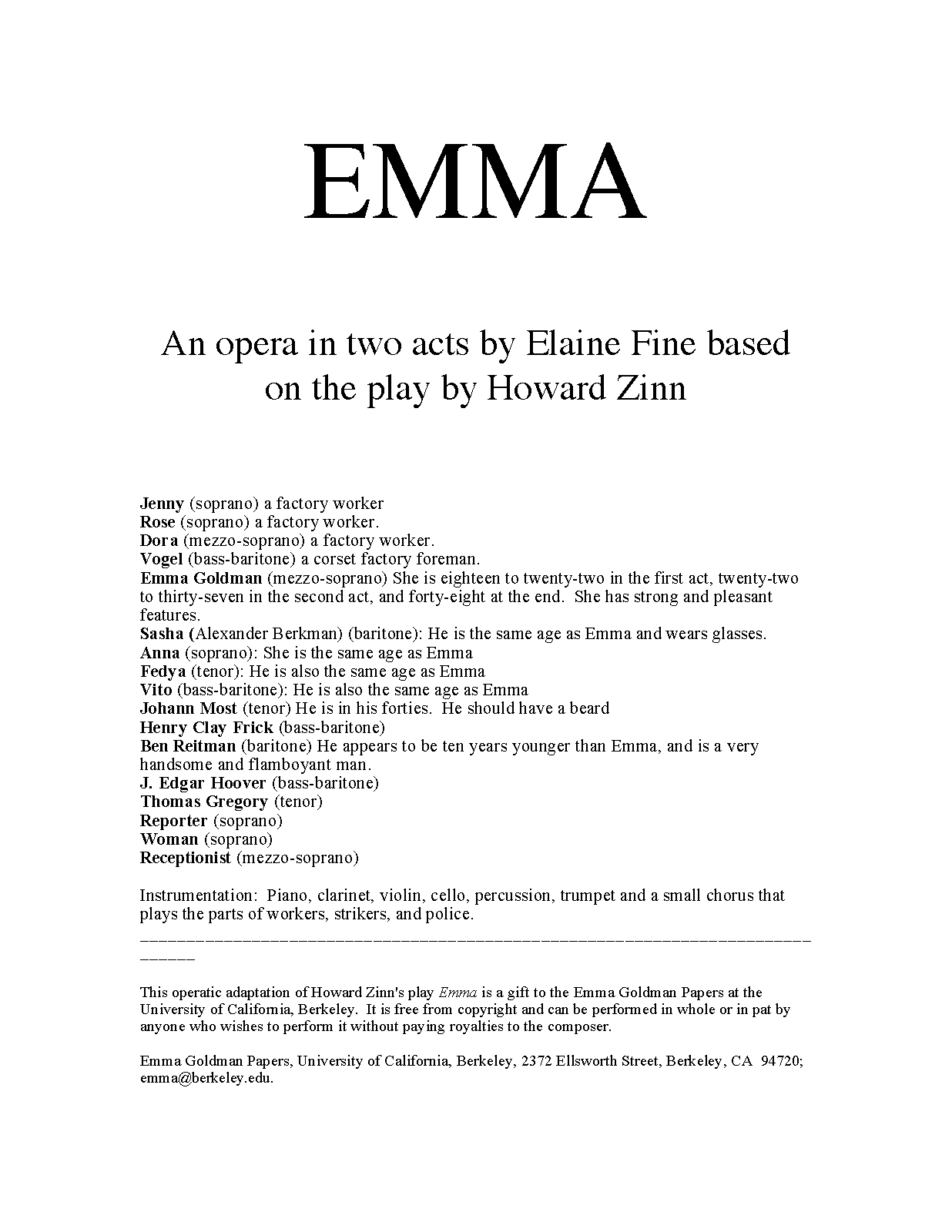 | Genre Categories | Operas; Theatrical Works; For voices, mixed chorus, clarinet, trumpet, percussion, violin, cello, piano; |