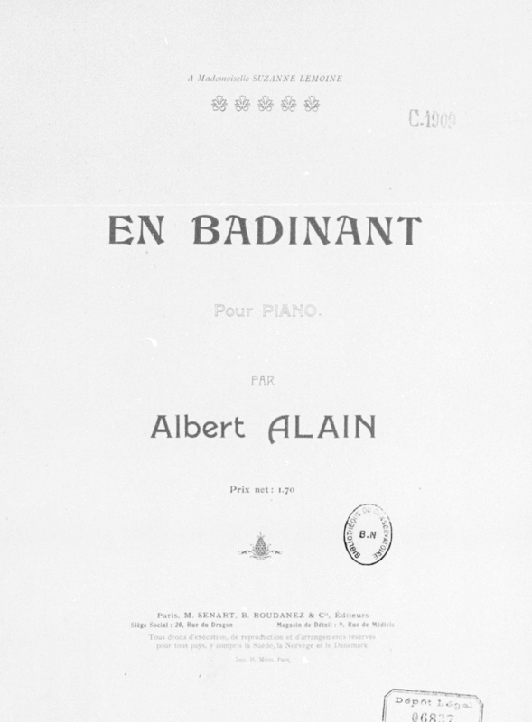 Publisher. Info. Paris: Senart, Roudanez et Cie., n.d.[1909]. Plate S. R. & Cie. 2568.